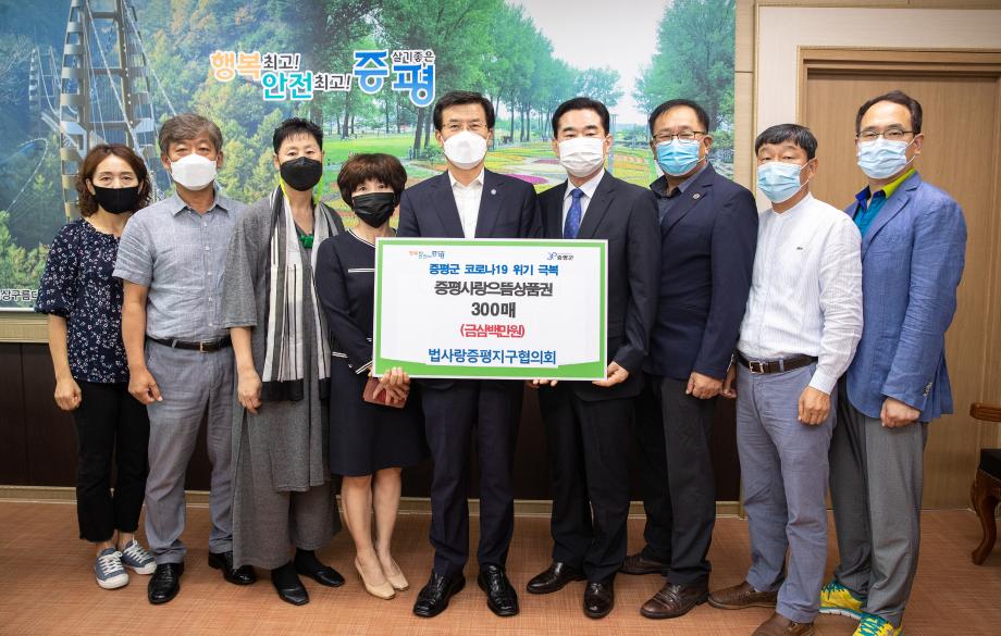 법무부 법사랑 증평지구협의회(회장 연광영)은 증평군의 코로나19 극복을 위해 불우한 가정환경에 있는 청소년에게 증평사랑으뜸상품권(300만원)을 기탁했다.