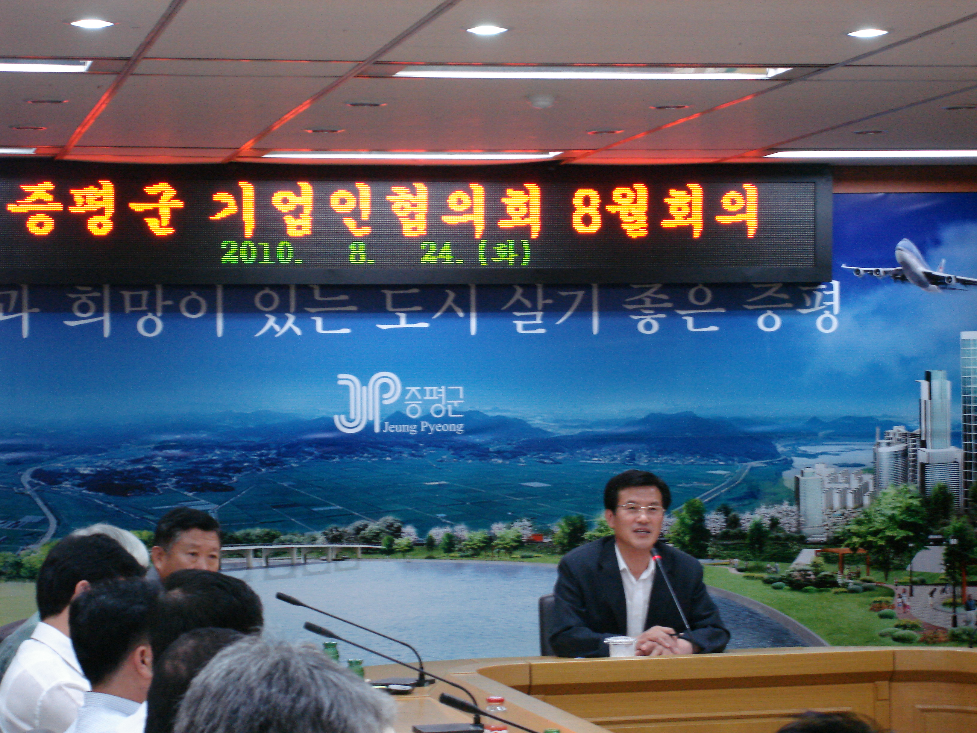 증평군 기업인협의회는 24일 11시에 군청 소회의실에서 홍성열 증평군수를 초청해 ‘기업인협의회의’를 가졌다.[보도자료실 참조]