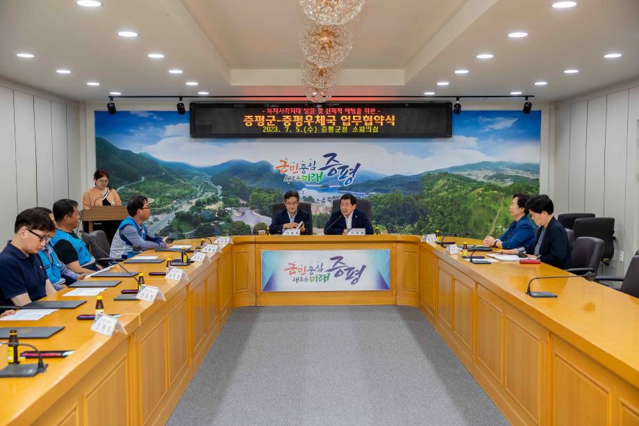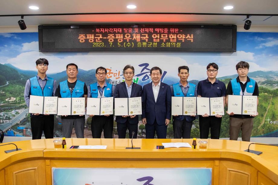 증평군은 지난 5일 군청 소회의실에서 증평우체국과 복지사각지대 위기가구 발굴 및 취약계층에 대한 선제적 예방을 위한 업무협약을 체결했다.