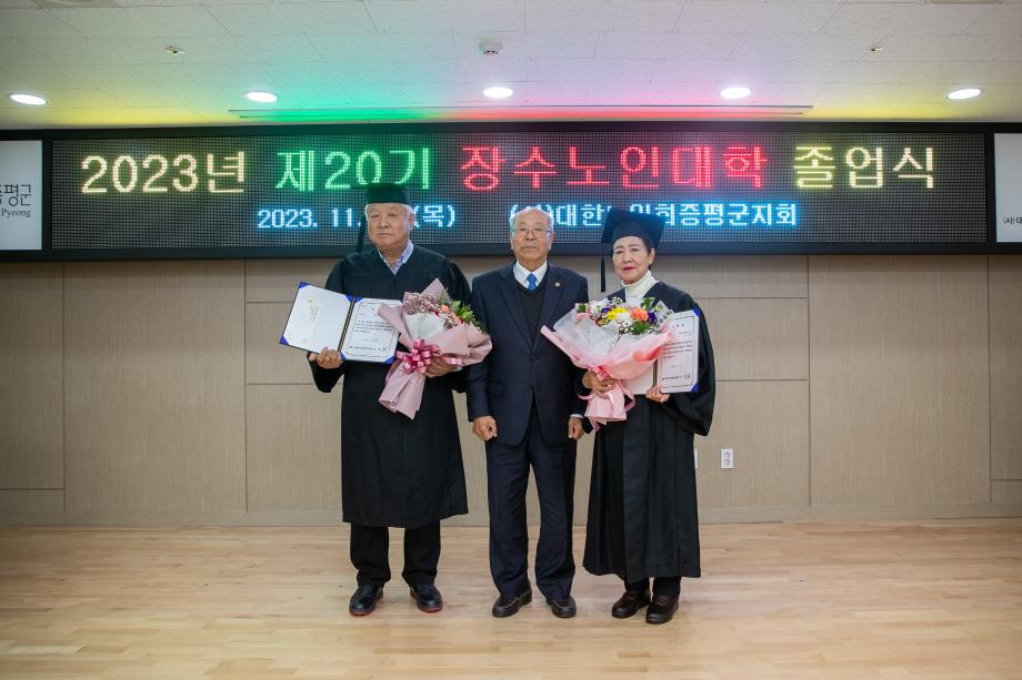 충북 증평군은 30일 증평군 노인지회 회의실에서 제20기 장수노인대학 졸업식을 개최했다.