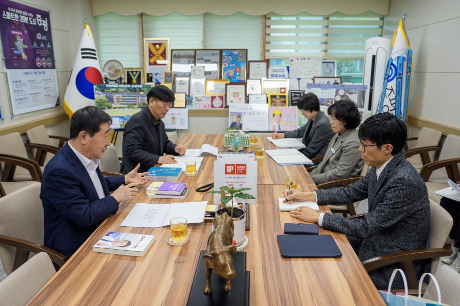 이재영 증평군수가 입시 및 교육전문가 심정섭 더나음연구소장과 만나, ‘미래지향적 교육도시 증평’ 실현을 위한 비전과 전략을 공유했다.