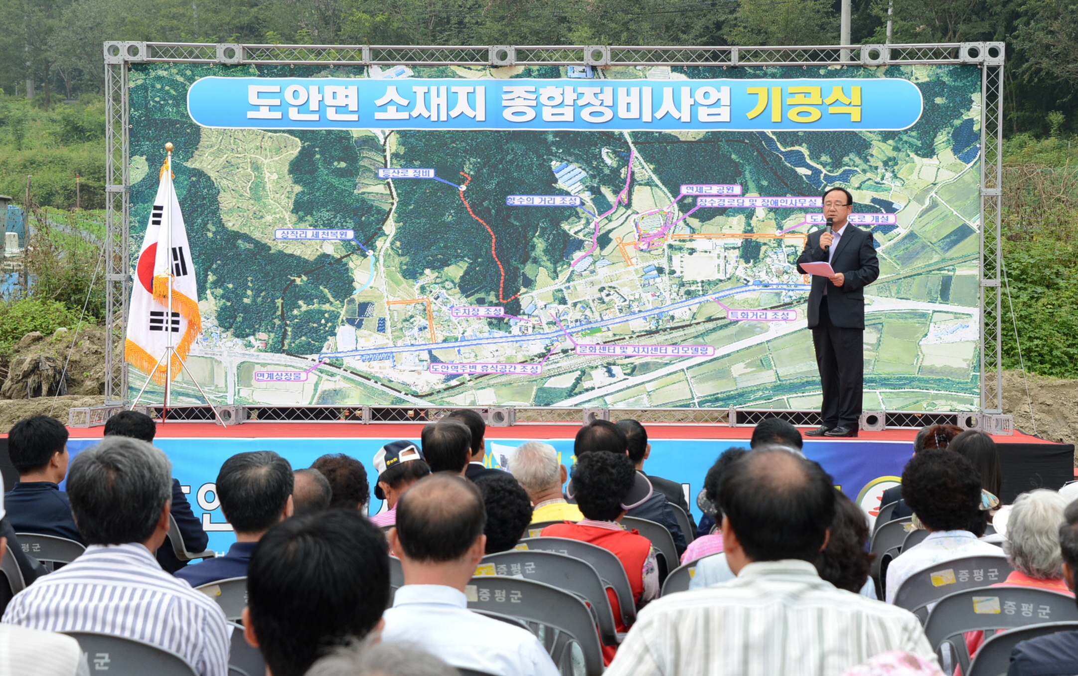 증평군은 도안면소재지 종합정비사업의 시작을 알리는 기공식을 9일 연제근공원 조성공사 현장내(옛, 도안농장부지)에서 가졌다. [보도자료실 참조]