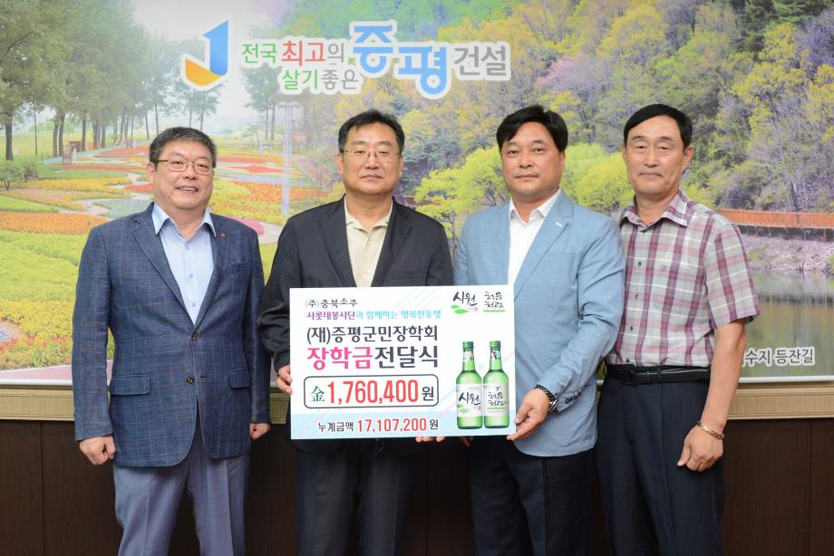 ㈜충북소주, 증평군민장학회 장학기금 기탁