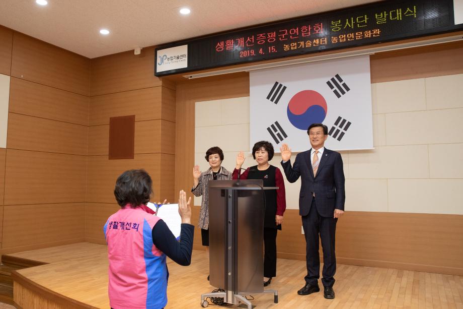 (사)한국생활개선증평군연합회(회장 하정숙)은 15일 농업기술센터 농업인문화관 대강당에서 이웃 나눔과 재능기부 등을 위한 생활개선회 봉사단 발대식과 사랑의 쌀 나누기 행사를 열었다.