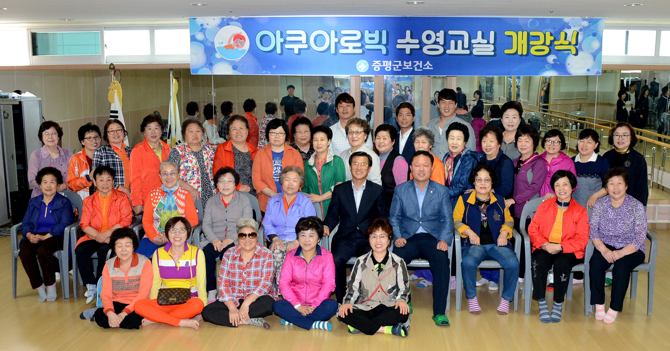 증평군보건소는 2일 증평국민체육센터에서 홍성열군수. 연종석군의장 비롯한 기관단체장과 수강생 및 관계자 50여명이 참석한 가운데 ‘아쿠아로빅수영교실’ 개강식을 개최했다.(보도자료실 참조)