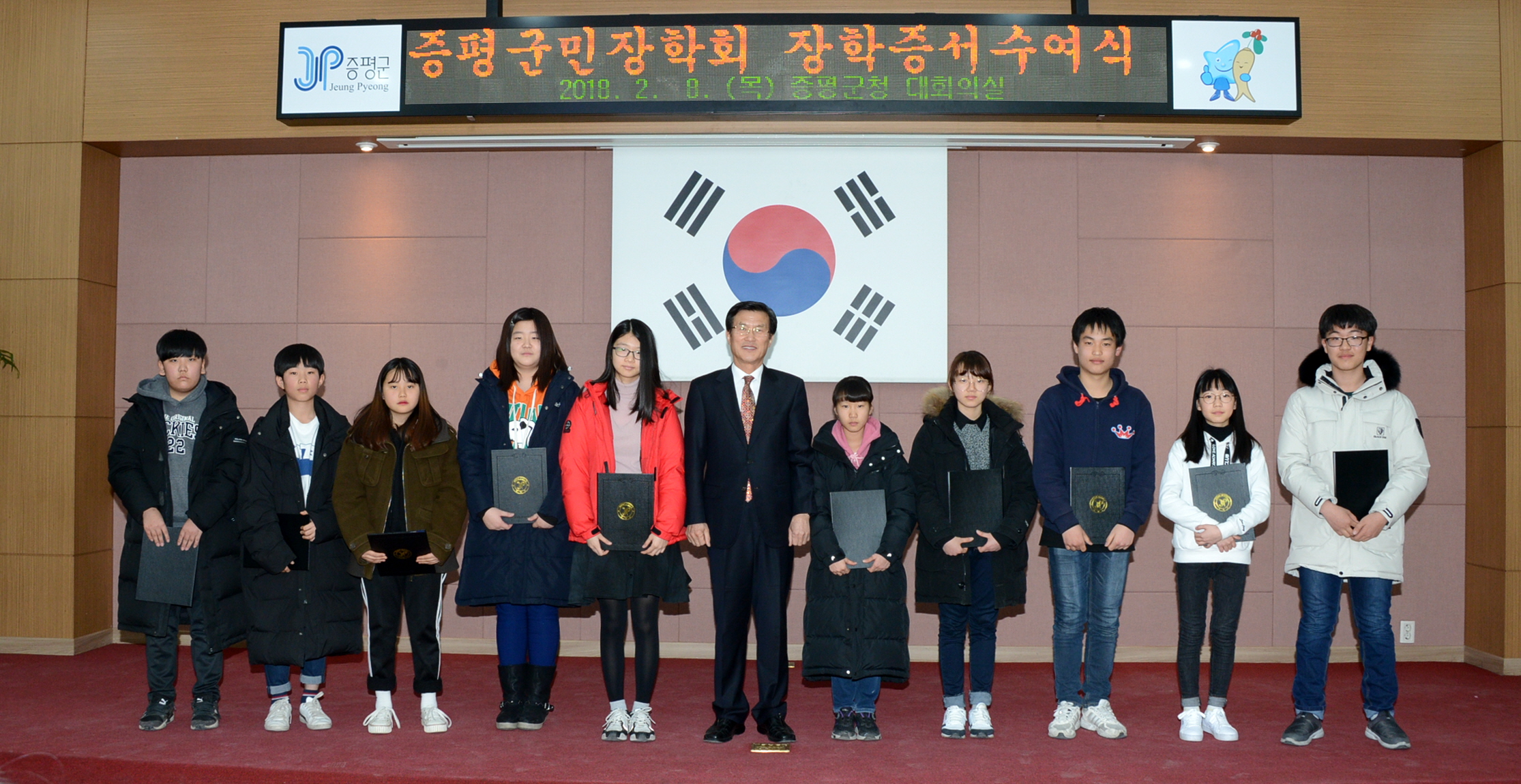 재단법인 증평군민장학회(이사장 홍성열 증평군수)는 8일과 9일 양일간 증평군청 대회의실에서 2018년 장학생에 선정된 학생들에게 장학증서를 전달했다. (보도자료실 참조)