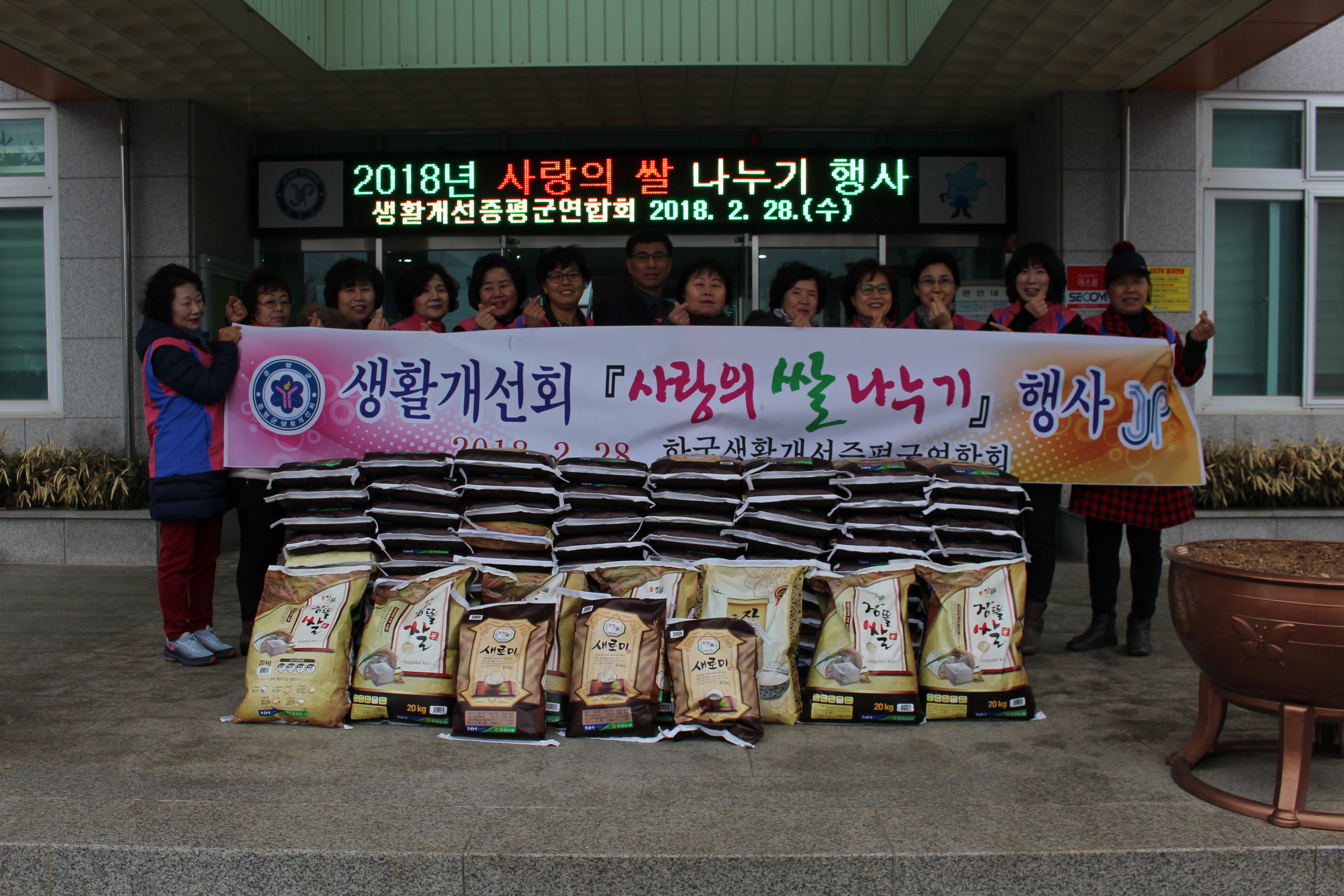 한국생활개선증평군연합회(회장 윤미자)는 28일 농업기술센터에서 어려운 시설과 불우이웃에게 따뜻한 마음을 나누기 위해 사랑의 쌀 나누기 행사를 개최했다.(보도자료실 참조)