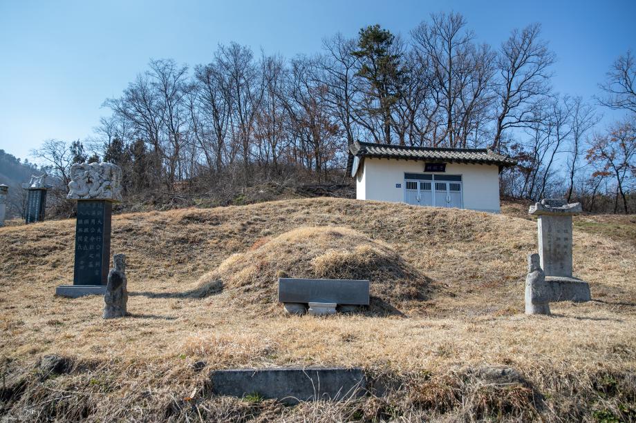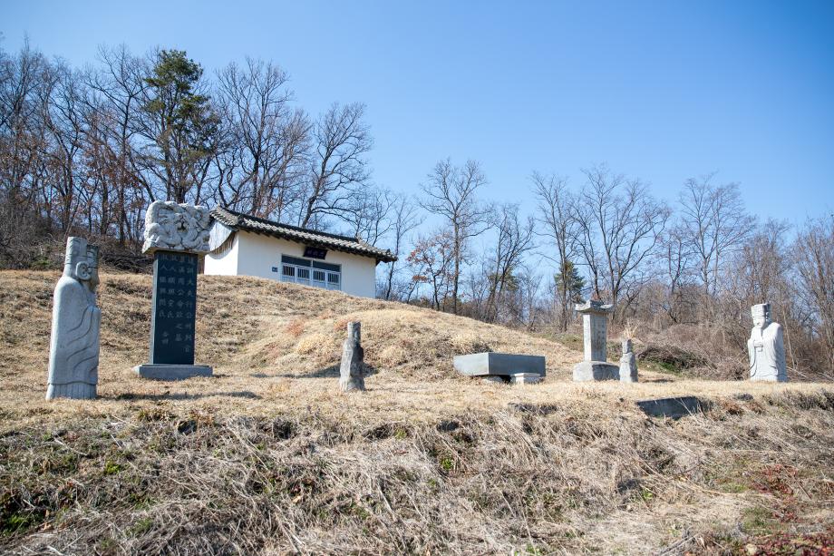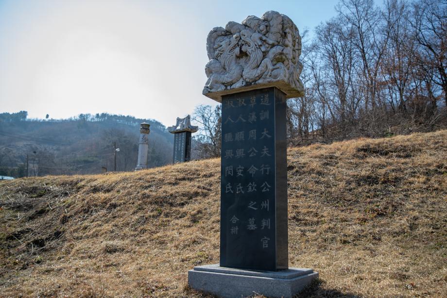 군 지정 문화재 초계주씨 주명흠 묘소 하마석 및 문인석