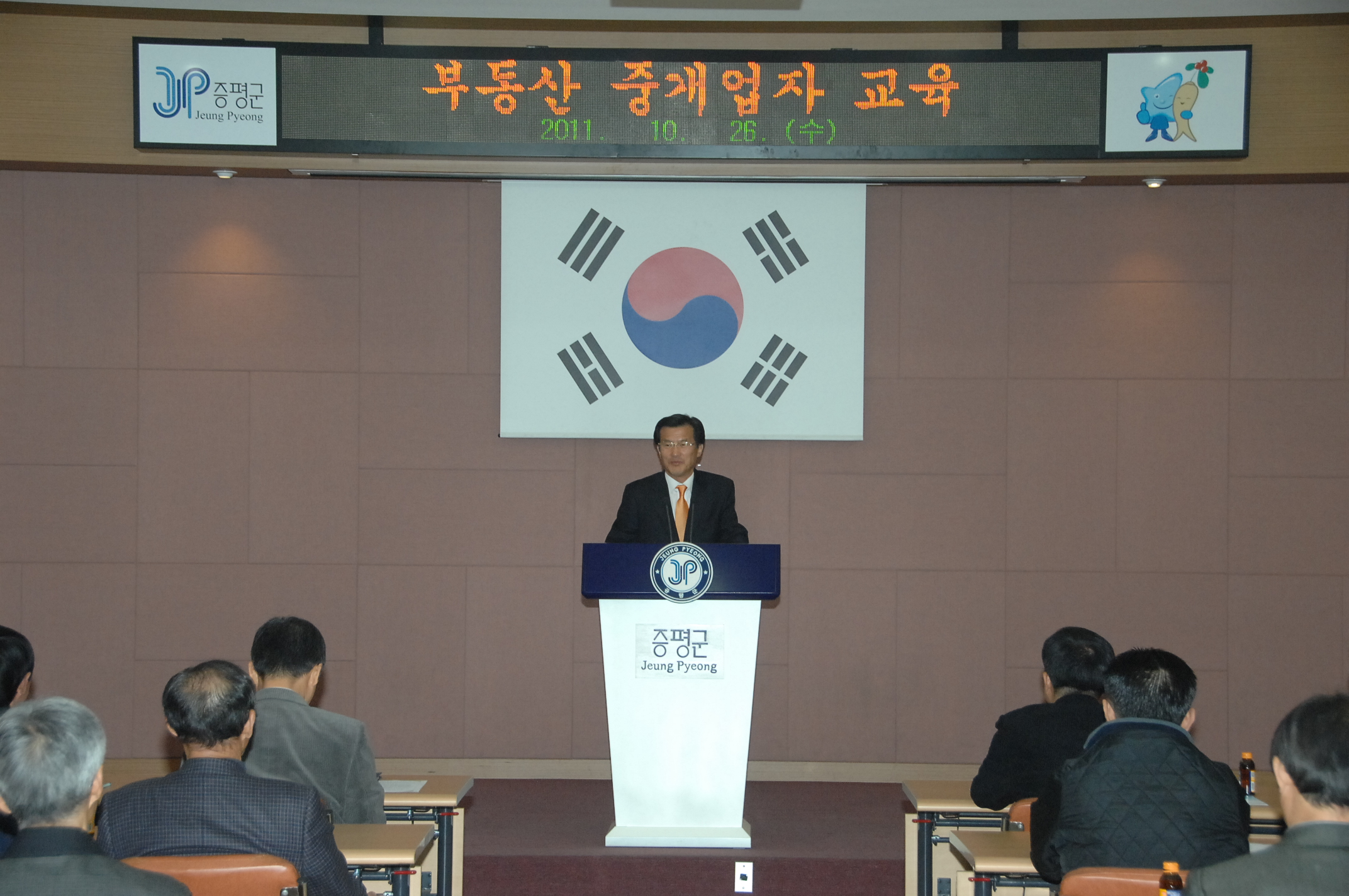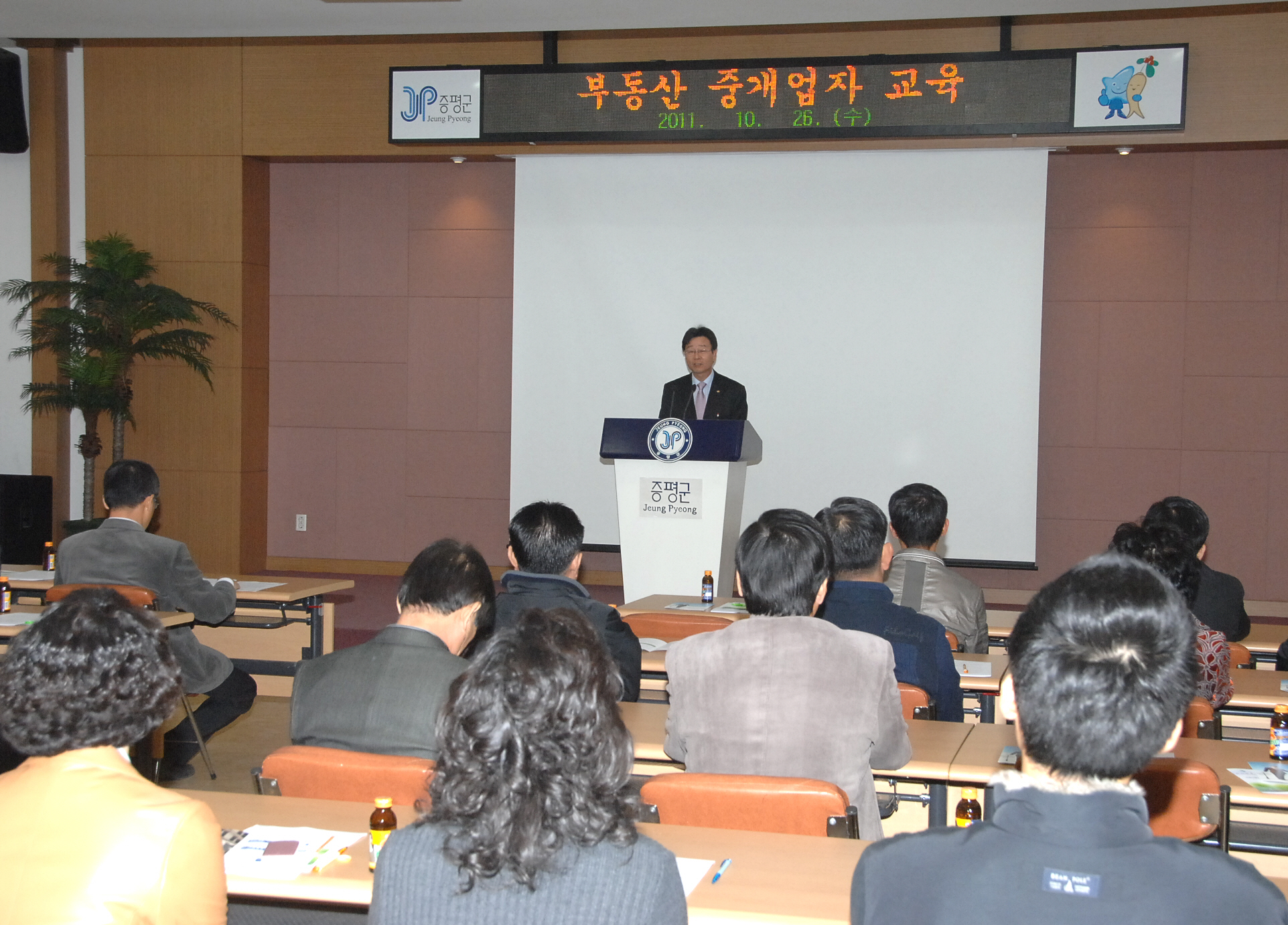 증평군은 26일 군청 대회의실에서 중개업자 및 중개보조원 40명이 참석한 가운데 건전한 부동산 거래질서 확립을 위한 준법실천다짐결의대회 및 교육을 실시했다. [보도자료실 참조]