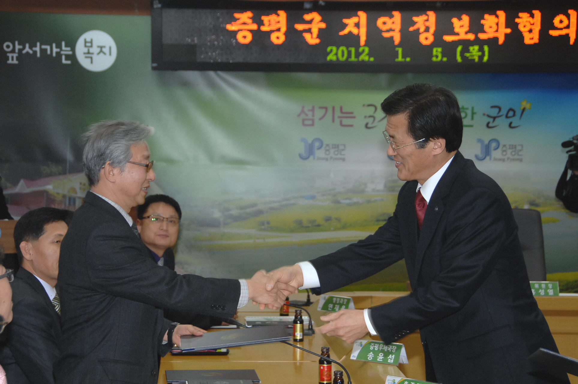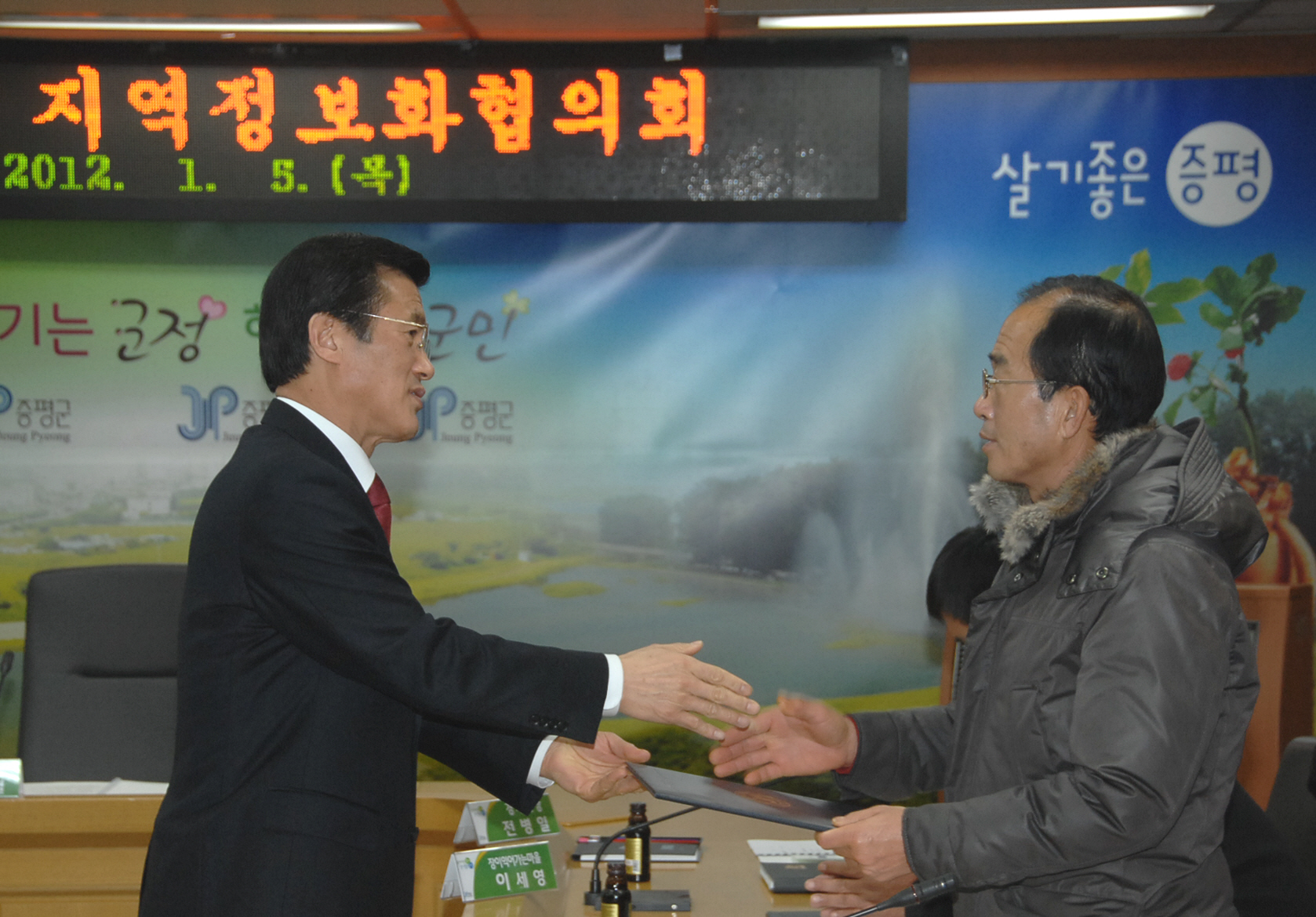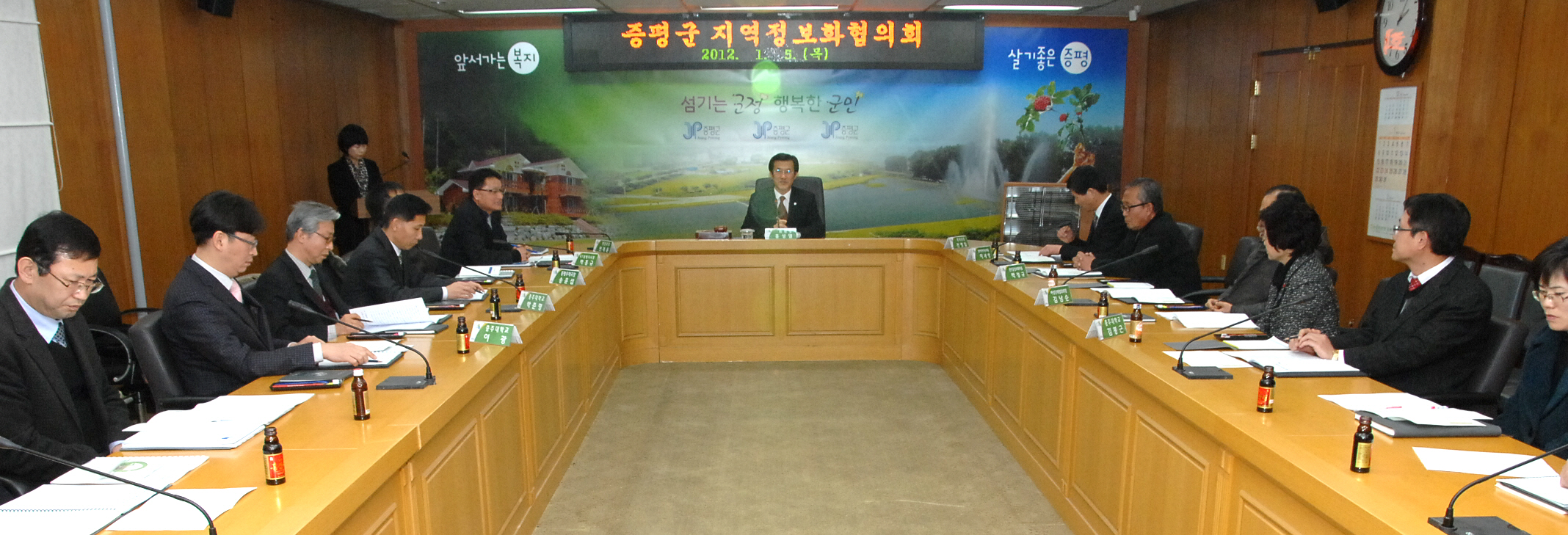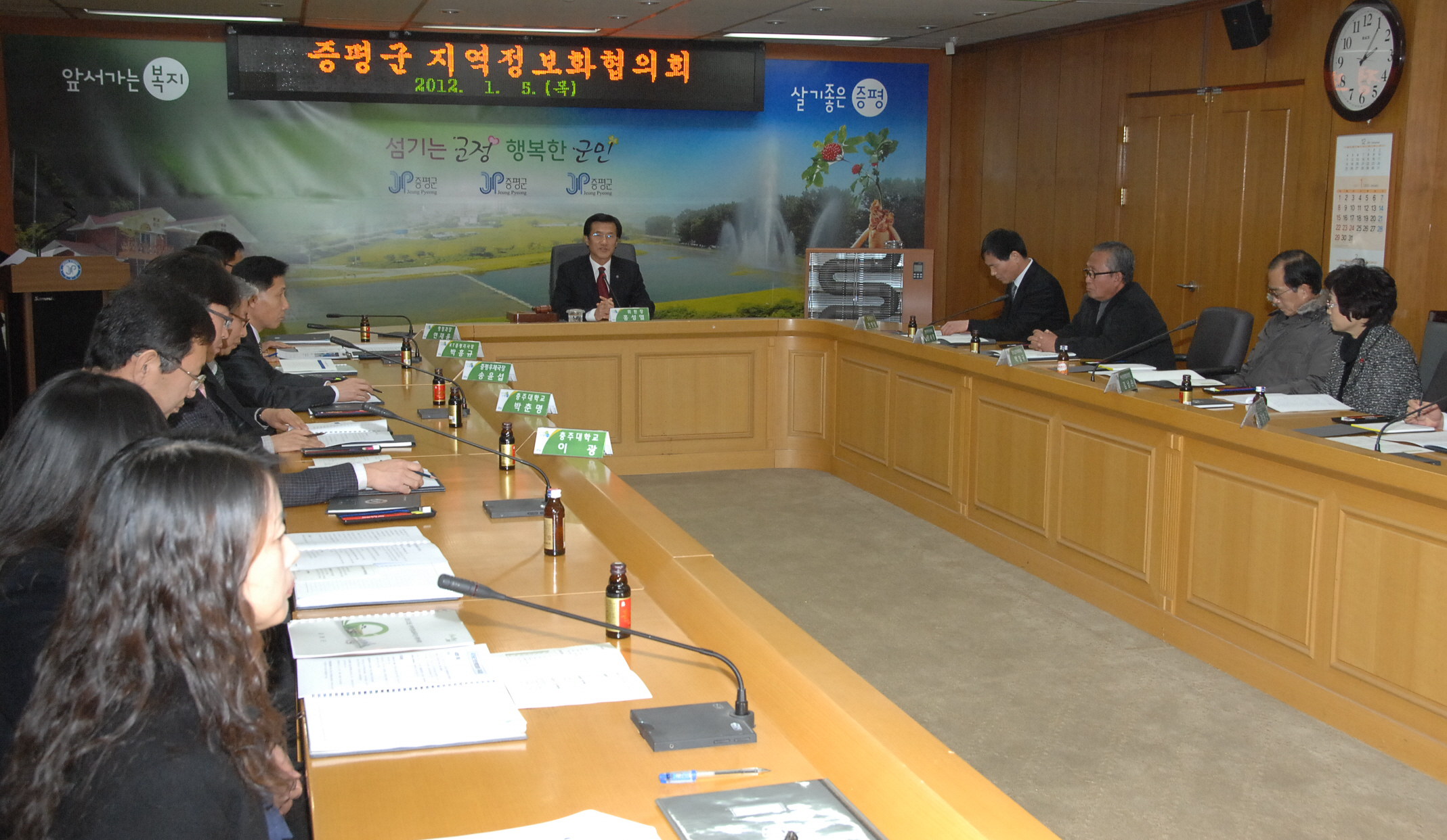 증평군은 5일 오후 2시 증평군수, KT증평지사장, 우체국장, 충주대 교수, 정보화마을 위원장 및 관계공무원 등 지역정보화협의회 위원 10여명이 참석한 가운데 지역정보화협의회를 열고 2012년 지역정보화수준 향상을 위한 의견을 나눴다.[보도자료실 참조]