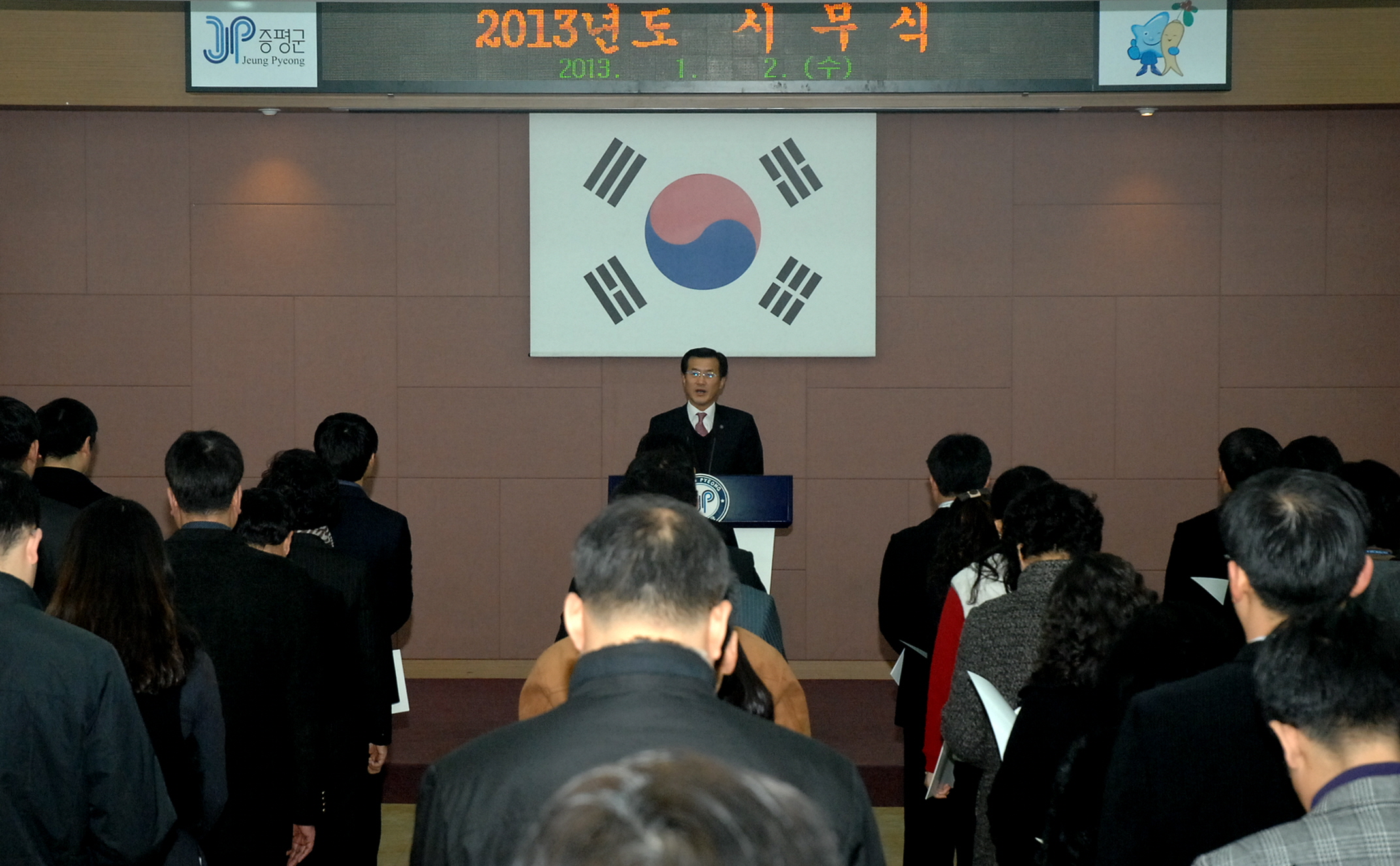 홍성열 증평군수를 비롯한 증평군 공직자들은 2일 오전 9시 군청대회의실에서 시무식을 갖고 2013년 힘찬 출발을 다짐했다.