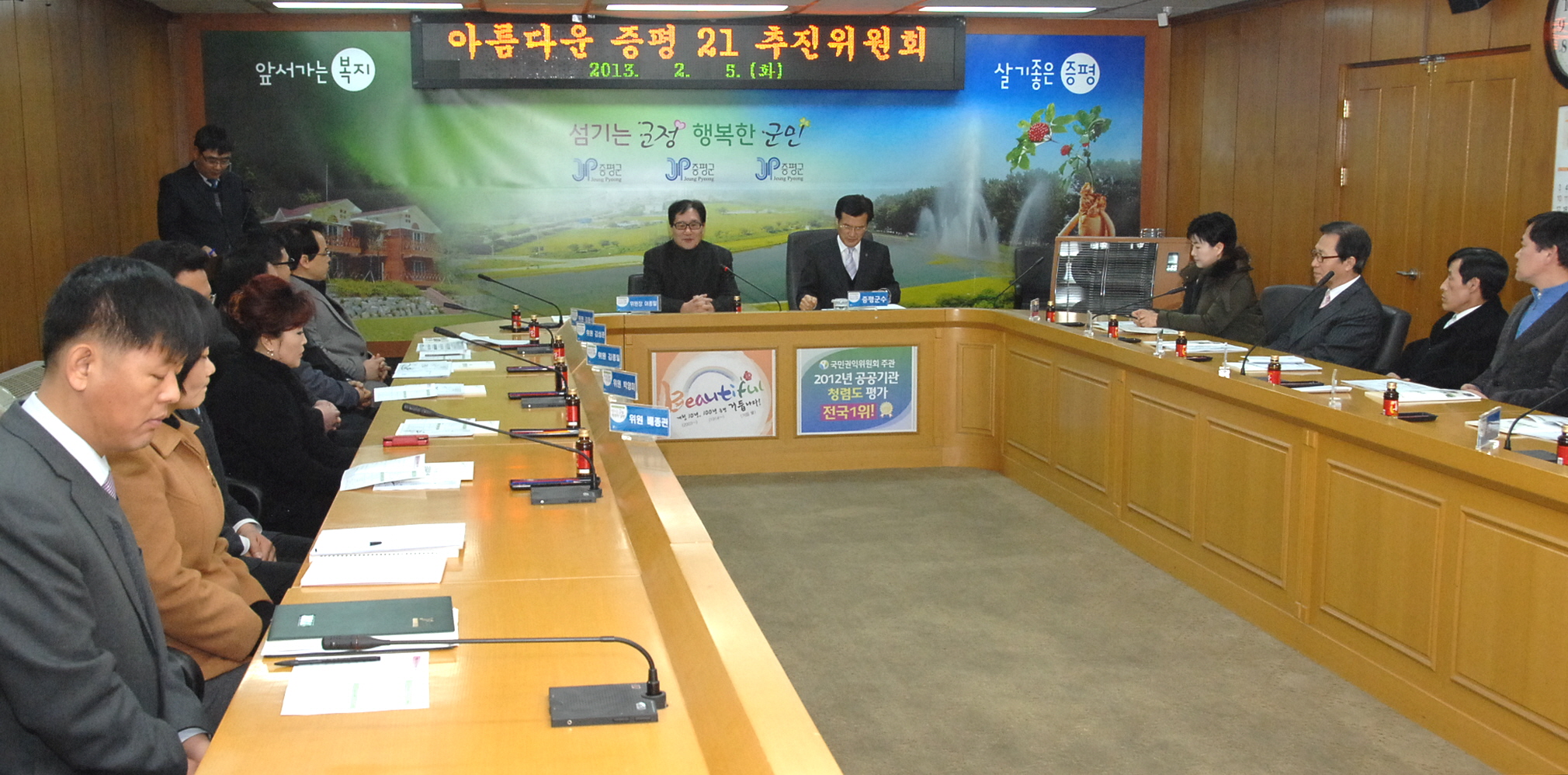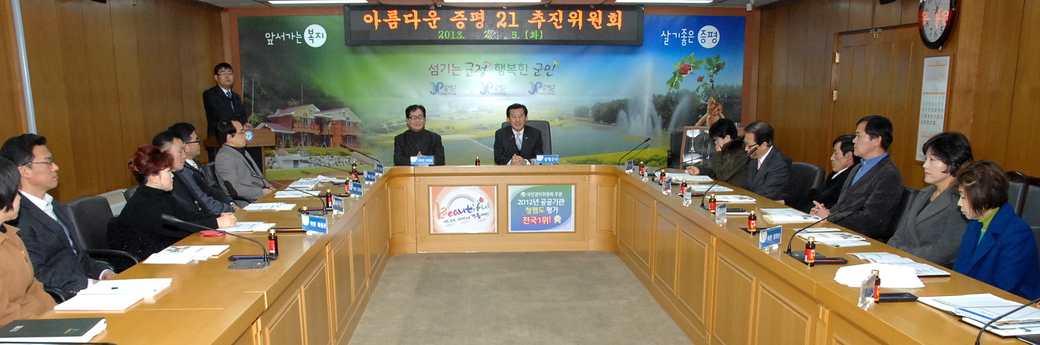 증평군은 저탄소 녹색성장 실현을 위해 5일 오전11시 소회의실에서 아름다운 증평21 추진위원회 회의를 개최했다.[보도자료실 참조]