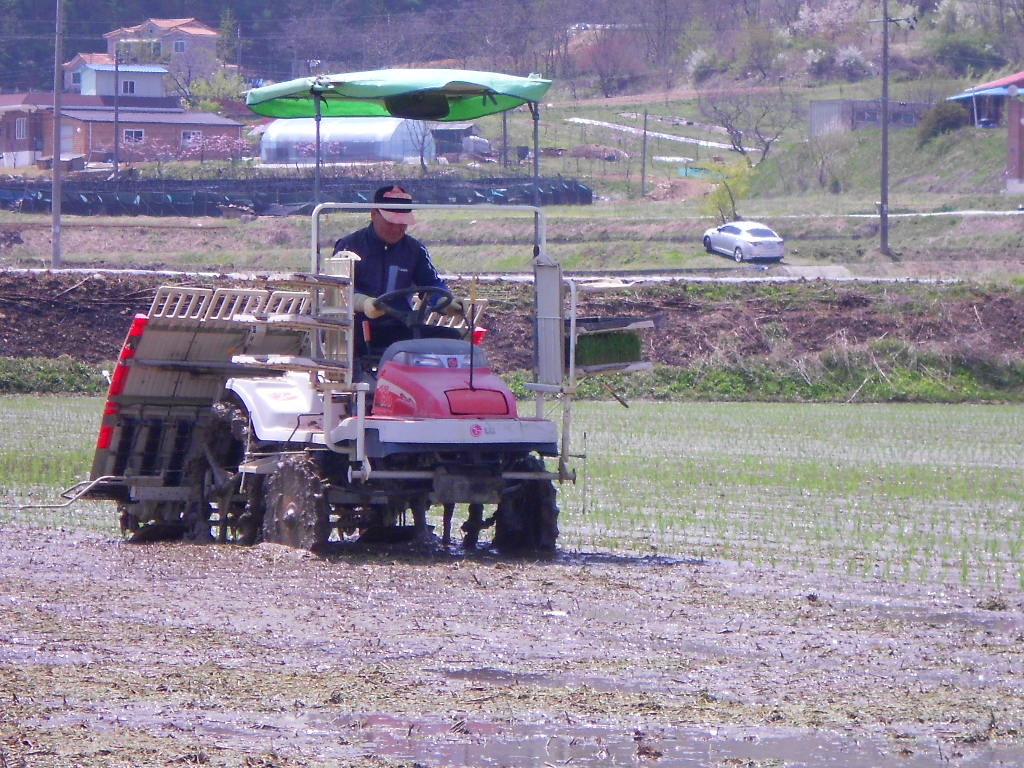 증평지역 첫 모내기가 30일 증평군 증평읍 남차리 김태복씨 논에서 있었다. [증평보도자료실 참조]