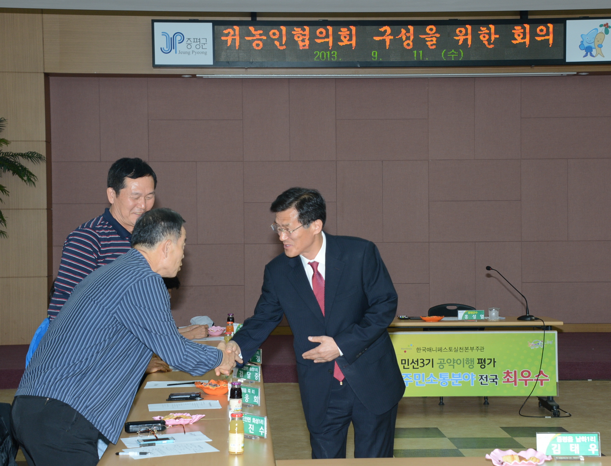 증평군은 11일 오후 3시 군청 대회의실에서 지역내 귀농인 30여명을 대상으로 귀농인 협의회 구성을 위한 모임을 가졌다. [보도자료실 참조]