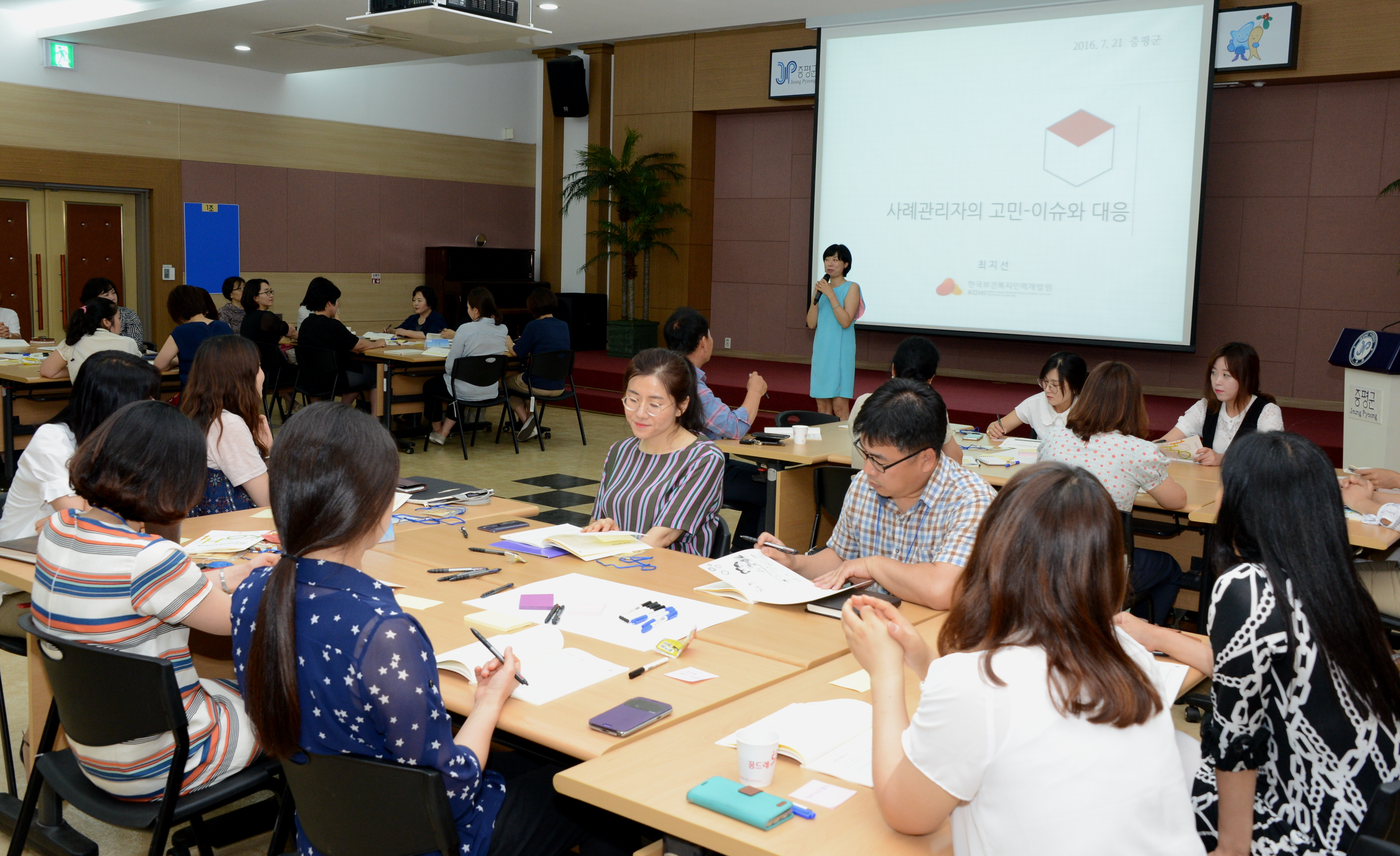 증평군과 한국보건복지인력개발원은 21일 군청 대회의실에서 읍·면의 사례관리를 강화하기 위해 관계공무원 및 사례관리사, 민관 기관·단체 종사자 등 55명이 참석한 가운데 사례관리 역량강화 교육을 실시했다.(보도자료실 참조)