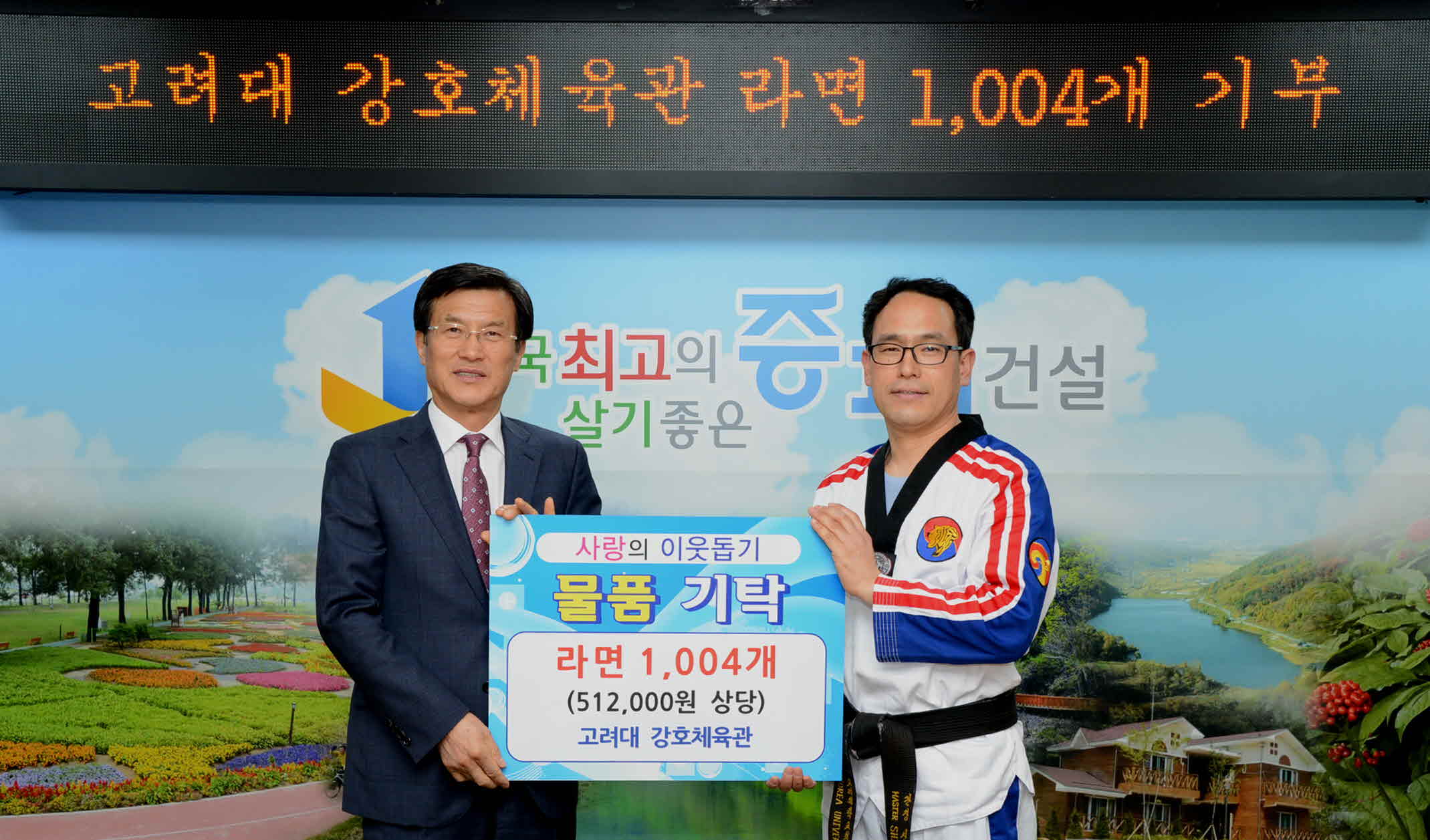 고려대 강호체육관, 사랑의 라면 1,004개 기부