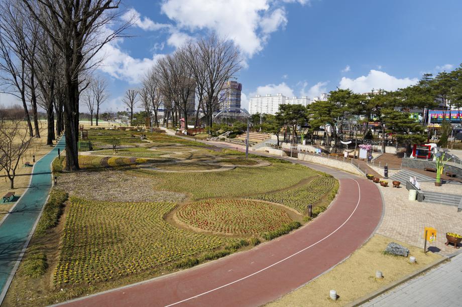 증평군이 지역명소인 보강천 미루나무숲에 봄꽃 식재작업을 마쳤다.