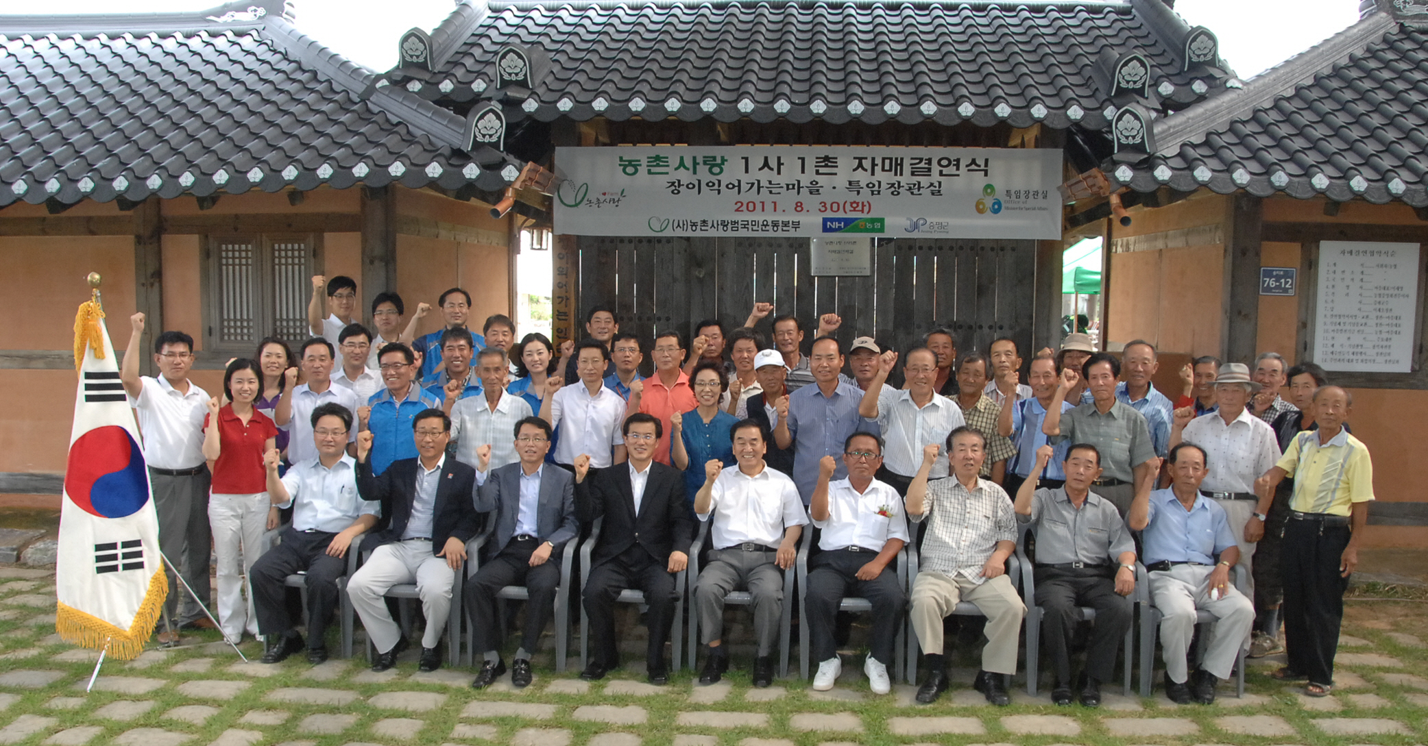 특임장관실(장관 이재오)과 충북 증평군 송산리 장이 익어가는 마을(대표 이세영)과의 ‘1사1촌 자매결연 협약식이’ 30일 오후 1시 장이 익어가는 마을 현지에서 열렸다.[보도자료실 참조]
