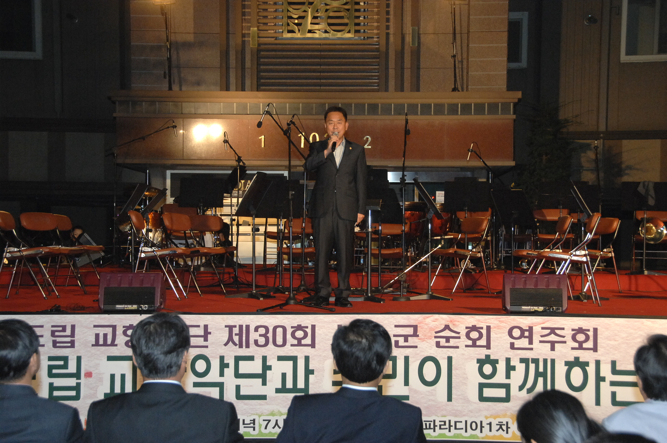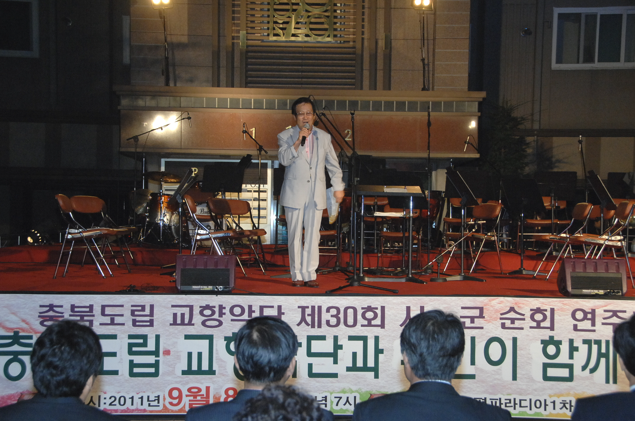 충북도립 교향악단과 주민이 함께하는 한가위 한마당 공연이 8일 저녁7시 파라다이 1차 아파트광장 특설무대에서 홍성열 군수, 김재룡 군의장, 김봉회 도의원, 이근영 입주자 대표를 비롯한 기관단체장과 입주민. 인근 지역 주민 등 500여명이 참석한 가운데 성황리에 종료 되었다.