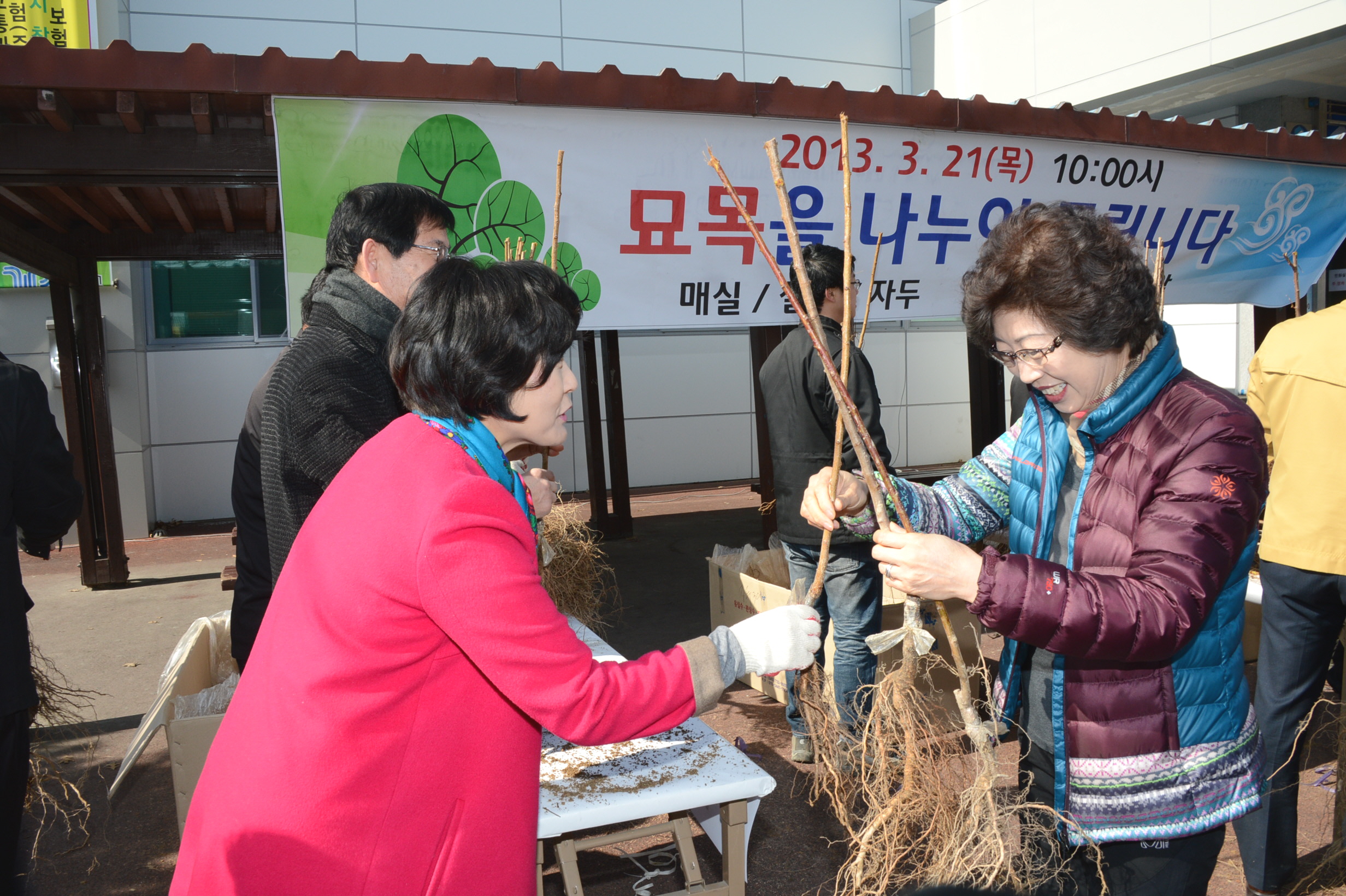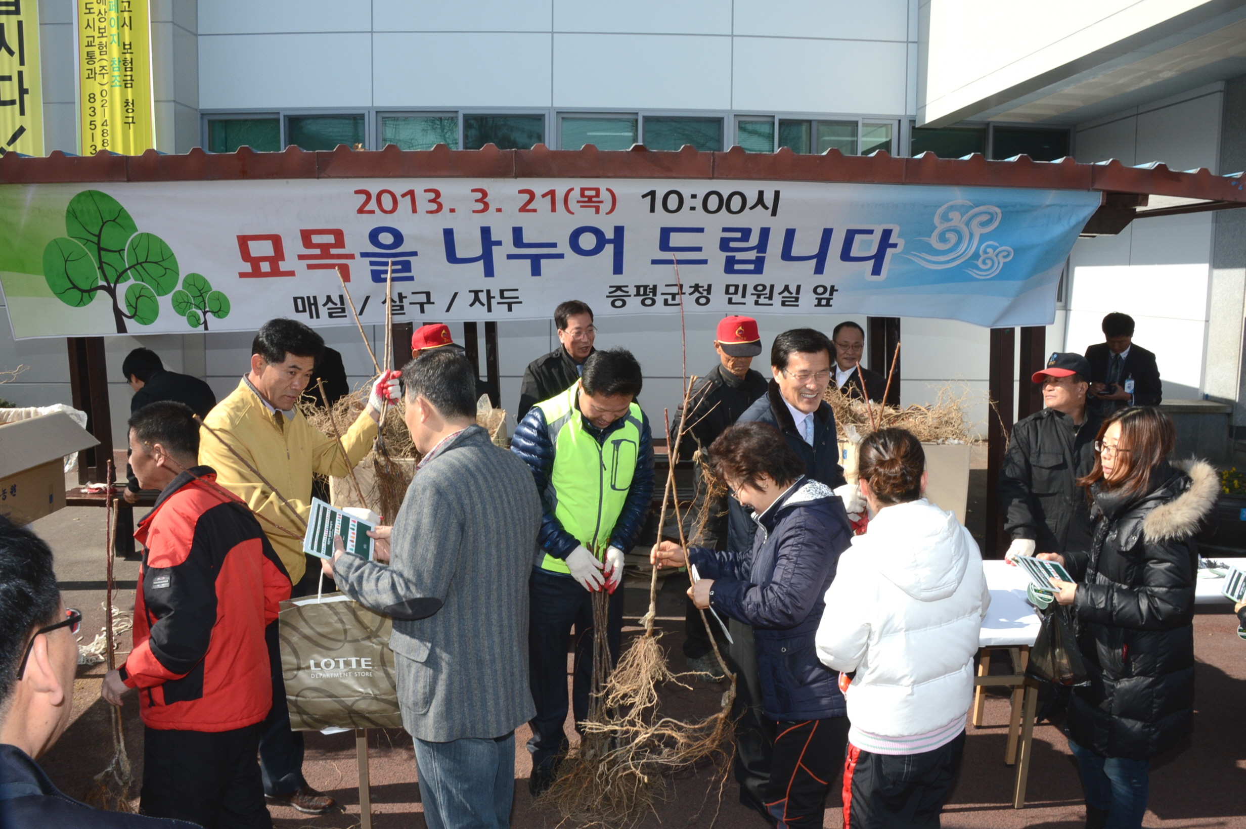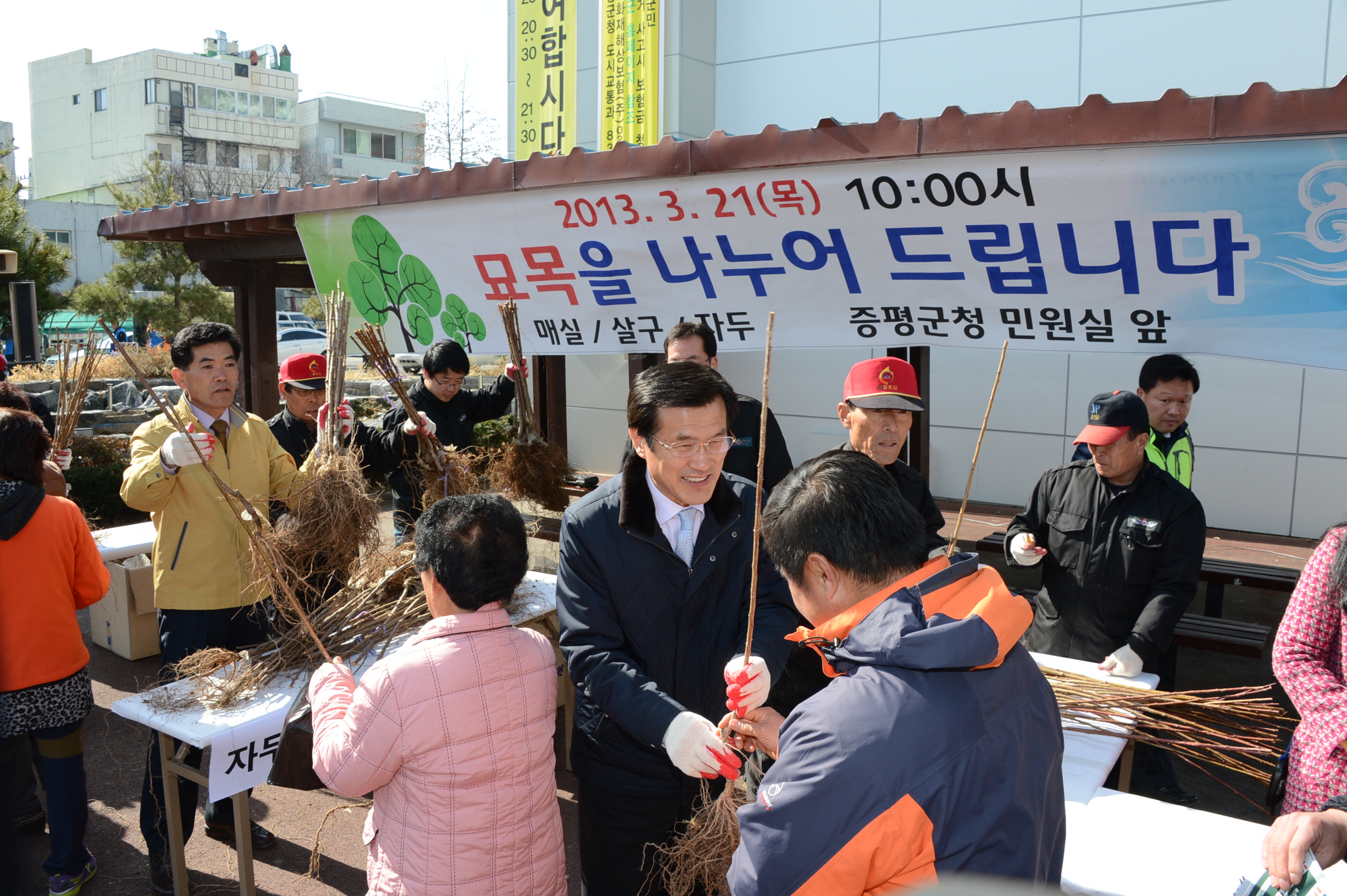 증평군은 제68회 식목일을 기념하고 ‘내나무갖기 캠페인’의 일원으로 21일 오전 10시 군청 민원실 앞에서 홍성열 증평군수, 박석규 군의장, 김봉회 도의원 등이 참여한 가운데 나무 나누어주기 행사를 가졌다. [보도자료실 참조]
