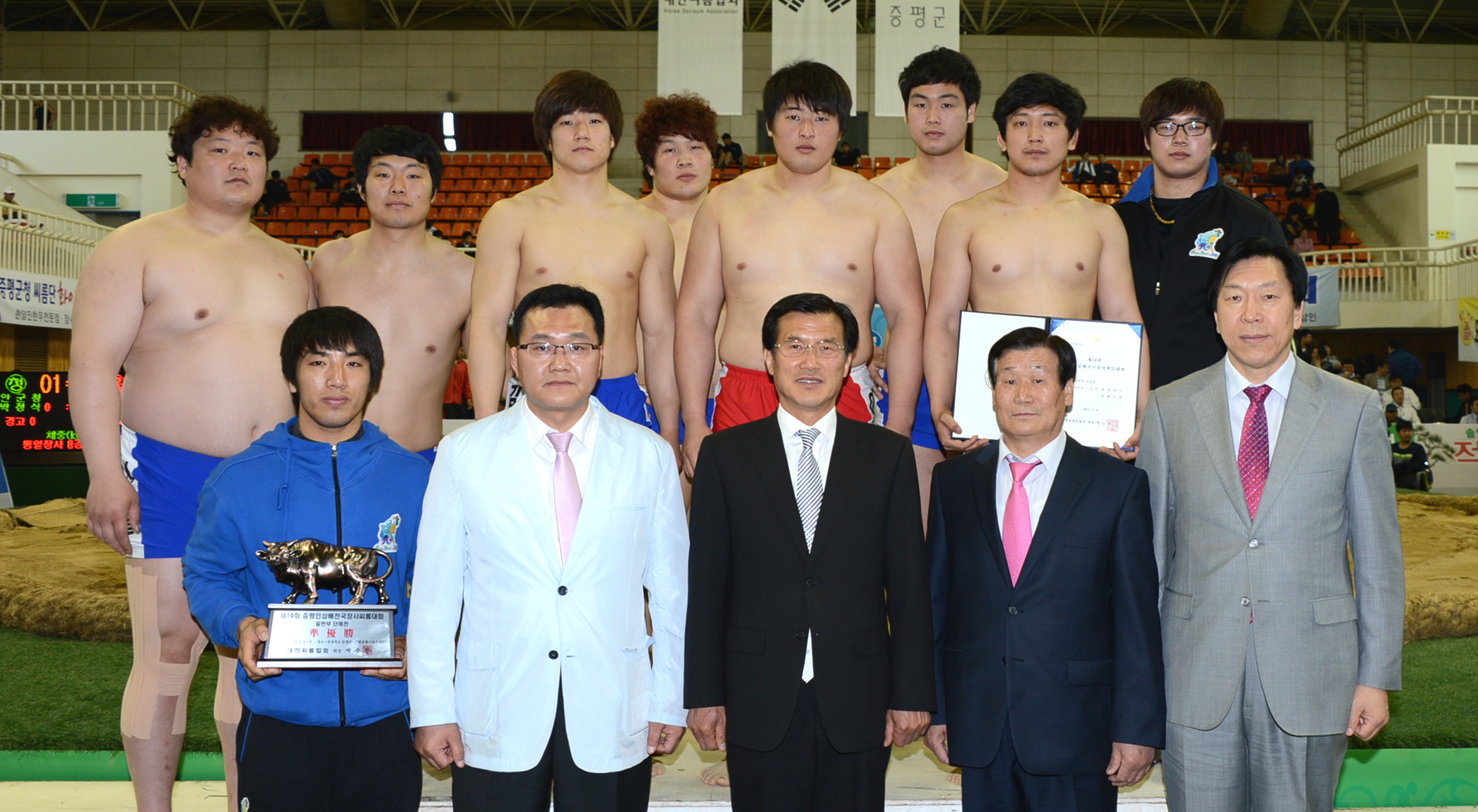 충북 증평군청 인삼씨름단이 올해 들어 전국대회에서 좋은 성적을 거두며 두각을 나타내고 있다. [증평보도자료실 참조]