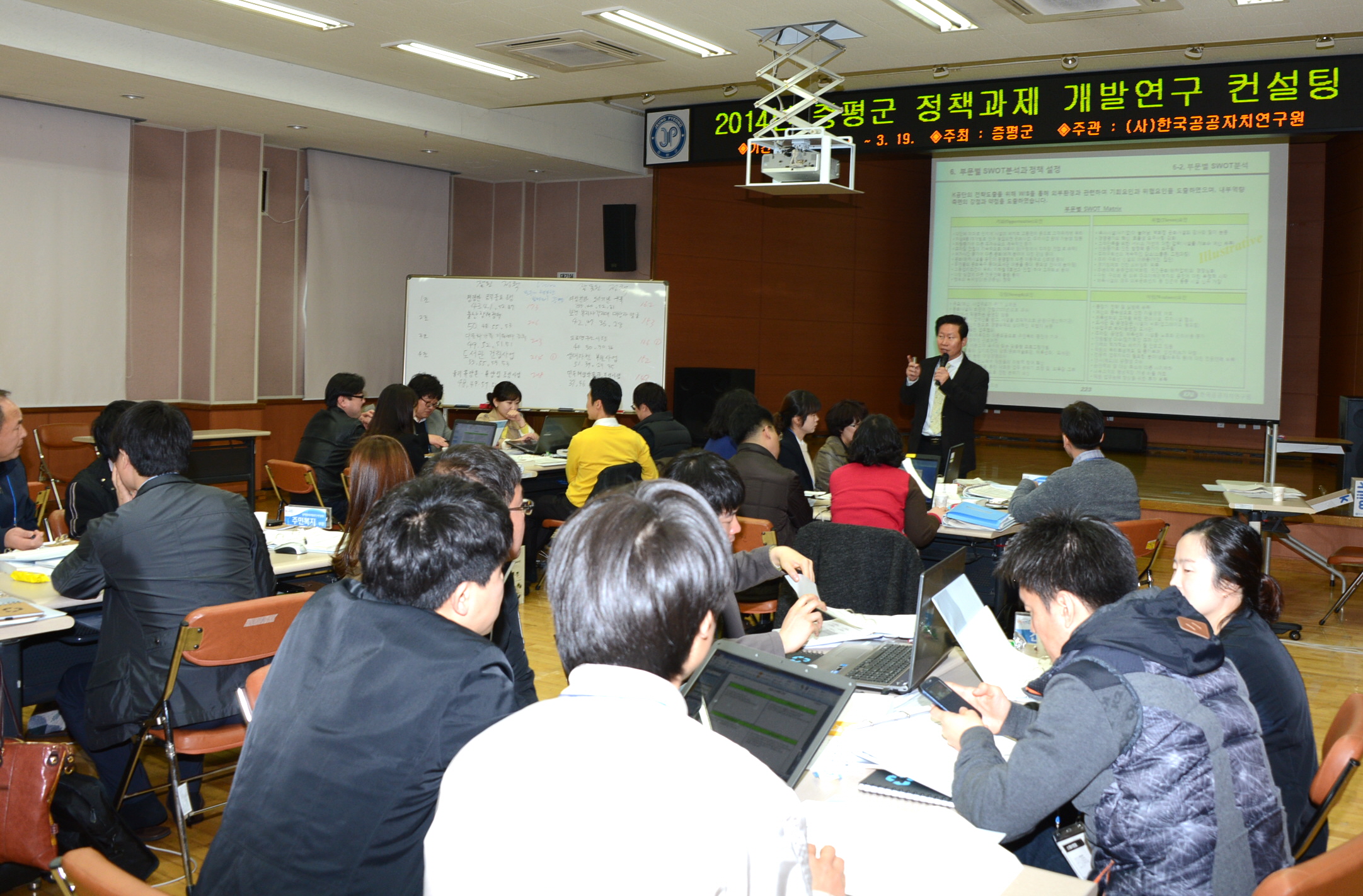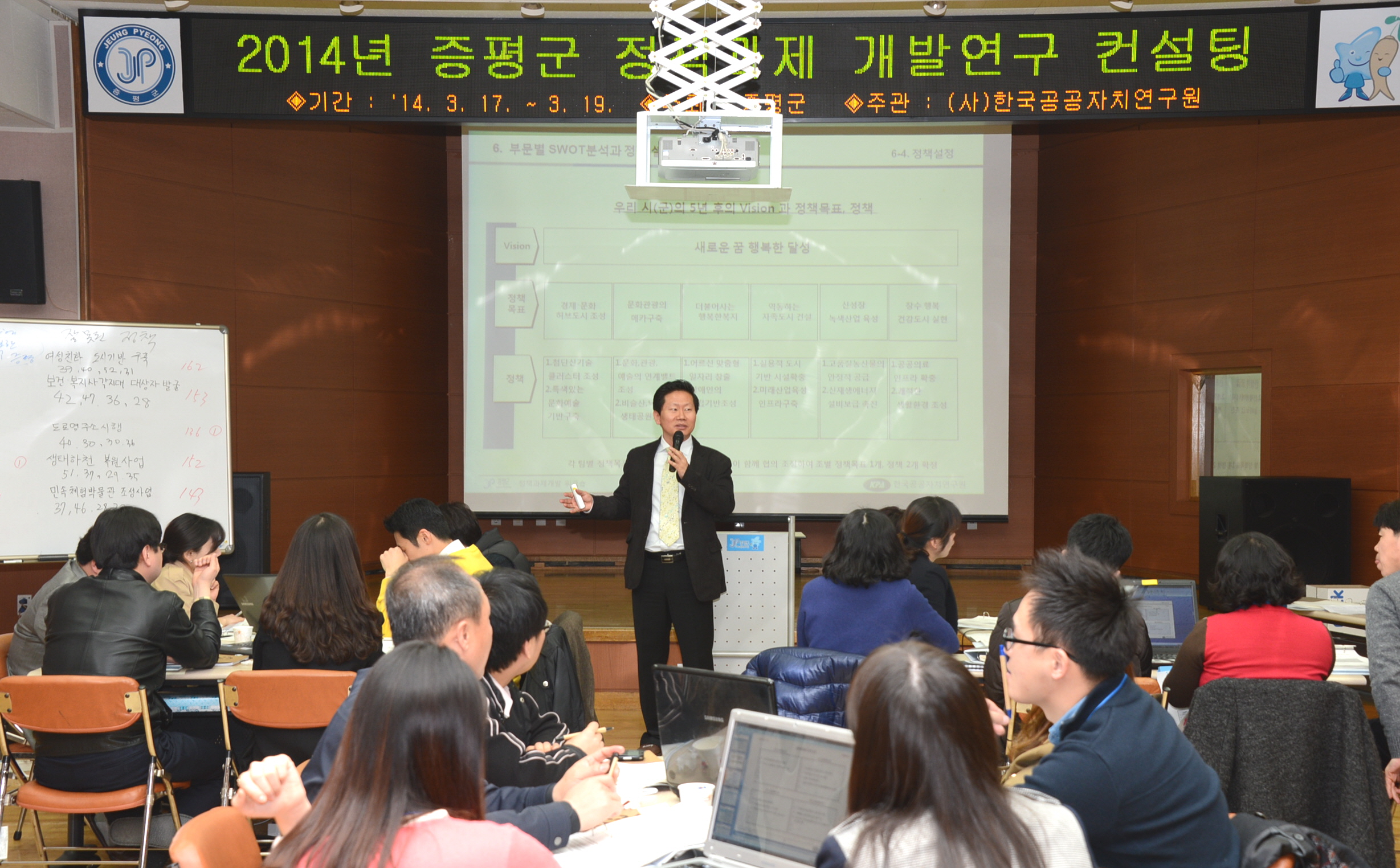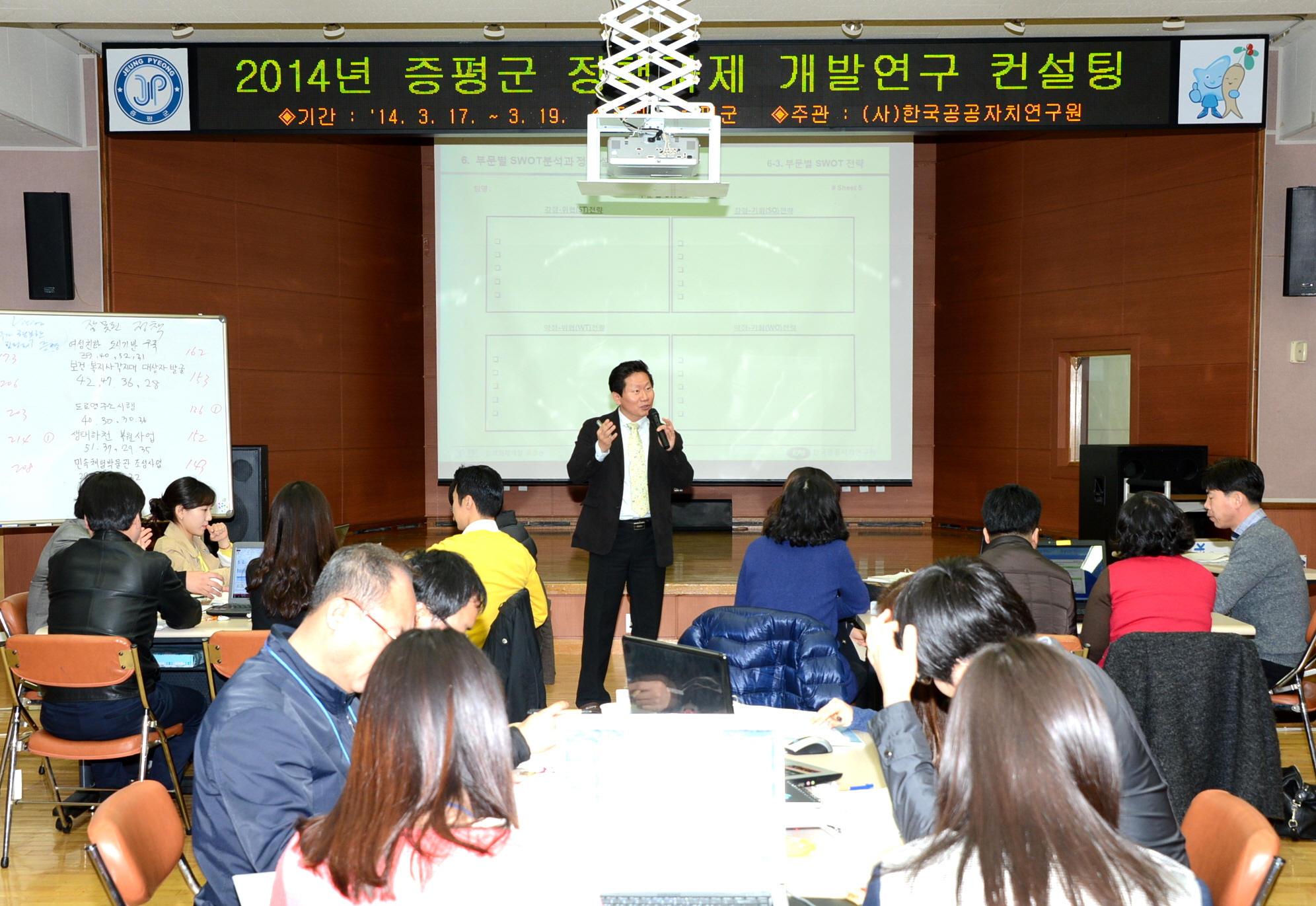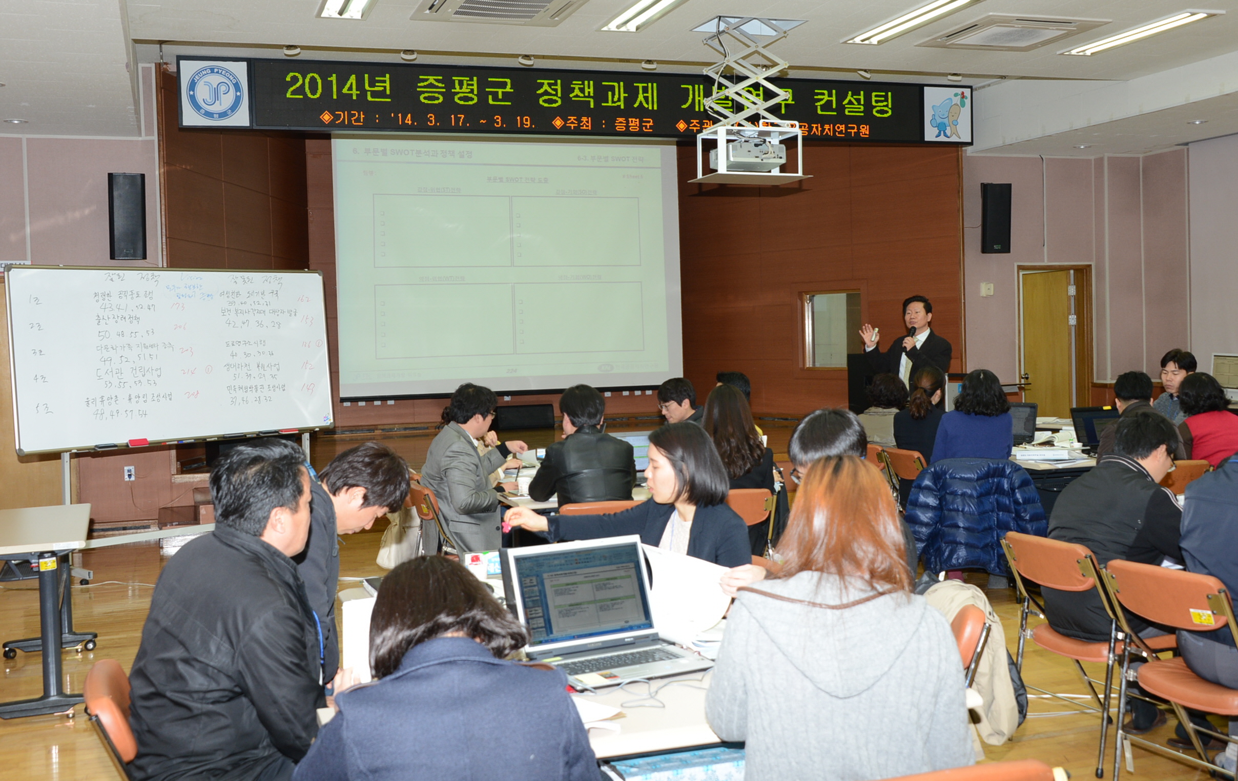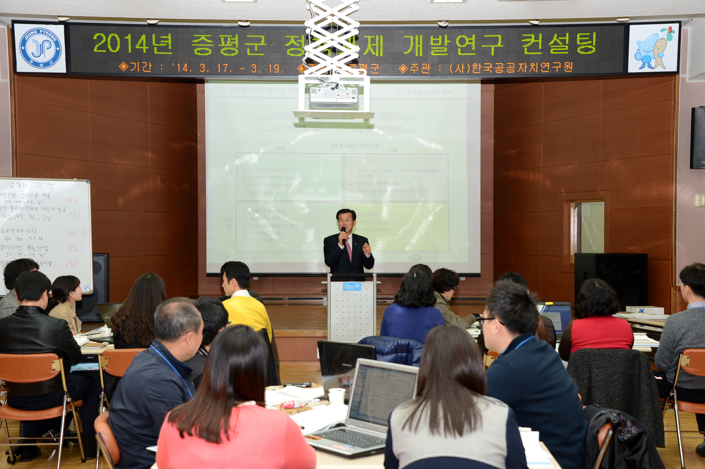 증평군은 지명탄생 100주년을 맞아 새로운 비전과 발전방향을 구상하고 직원의 업무역량 강화를 위한 ‘2014년 정책과제개발 컨설팅’을 개최했다. [보도자료실 참조]