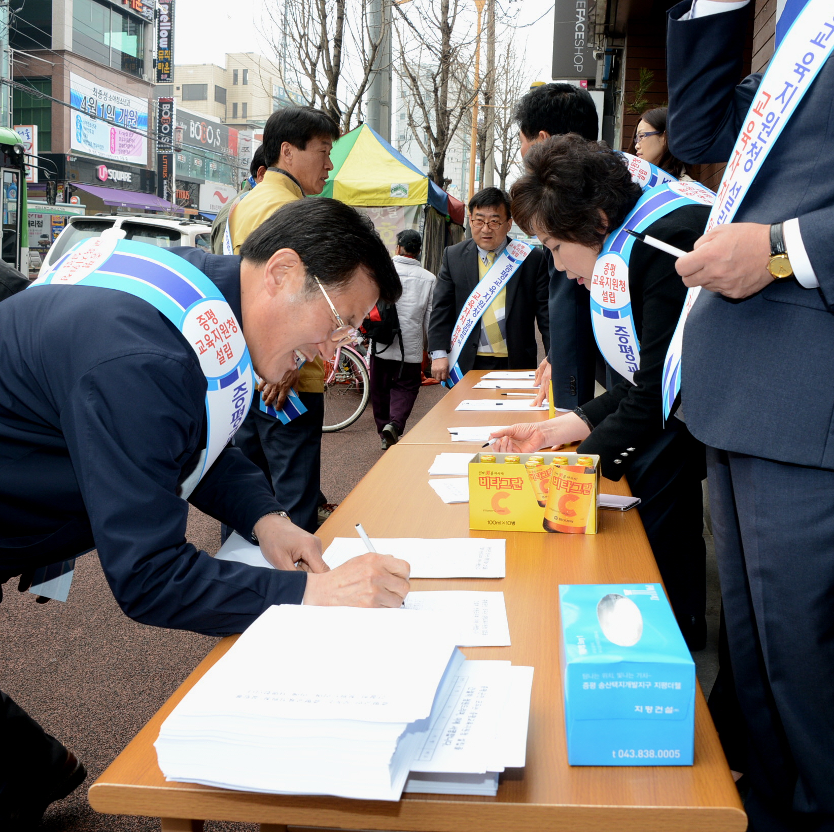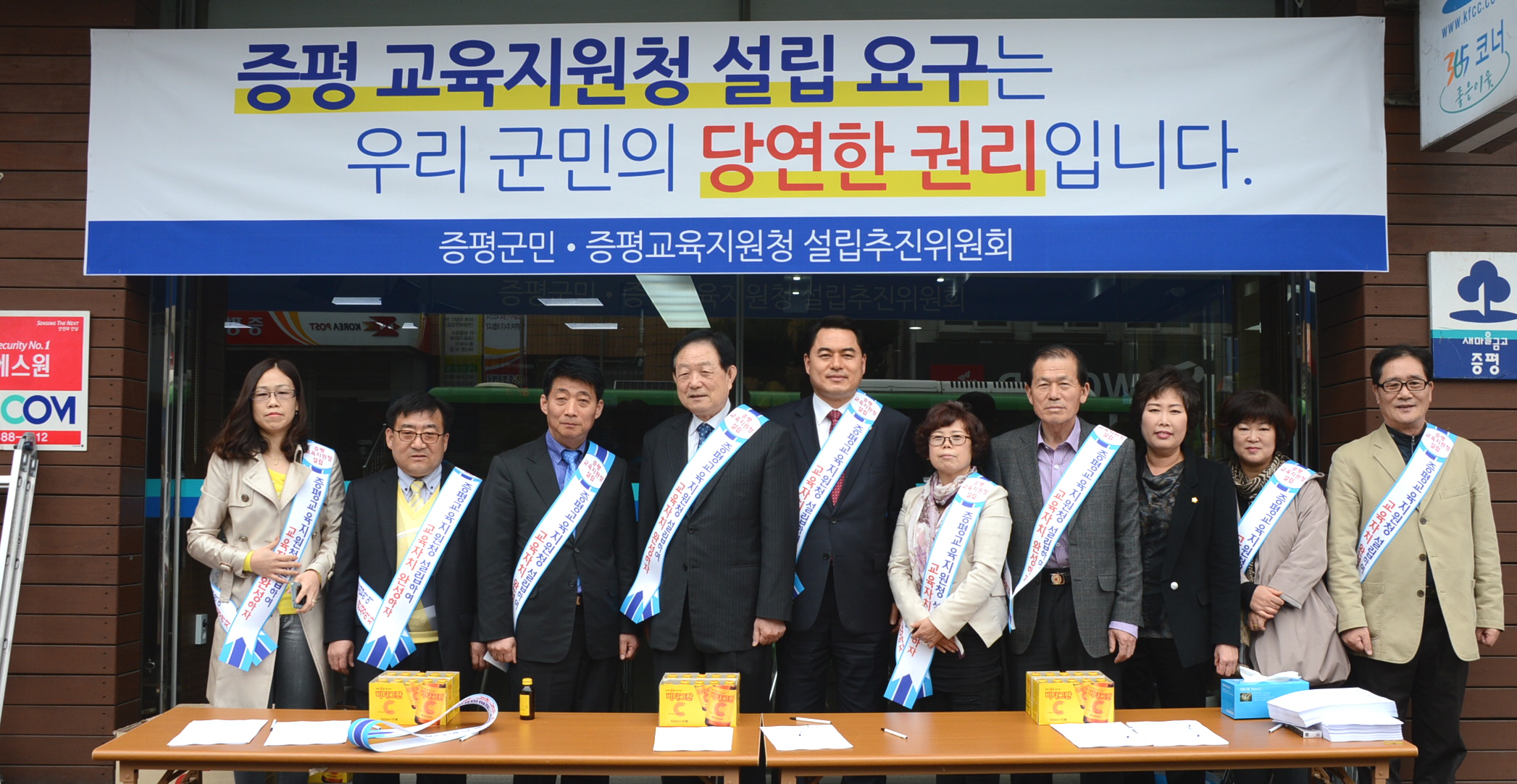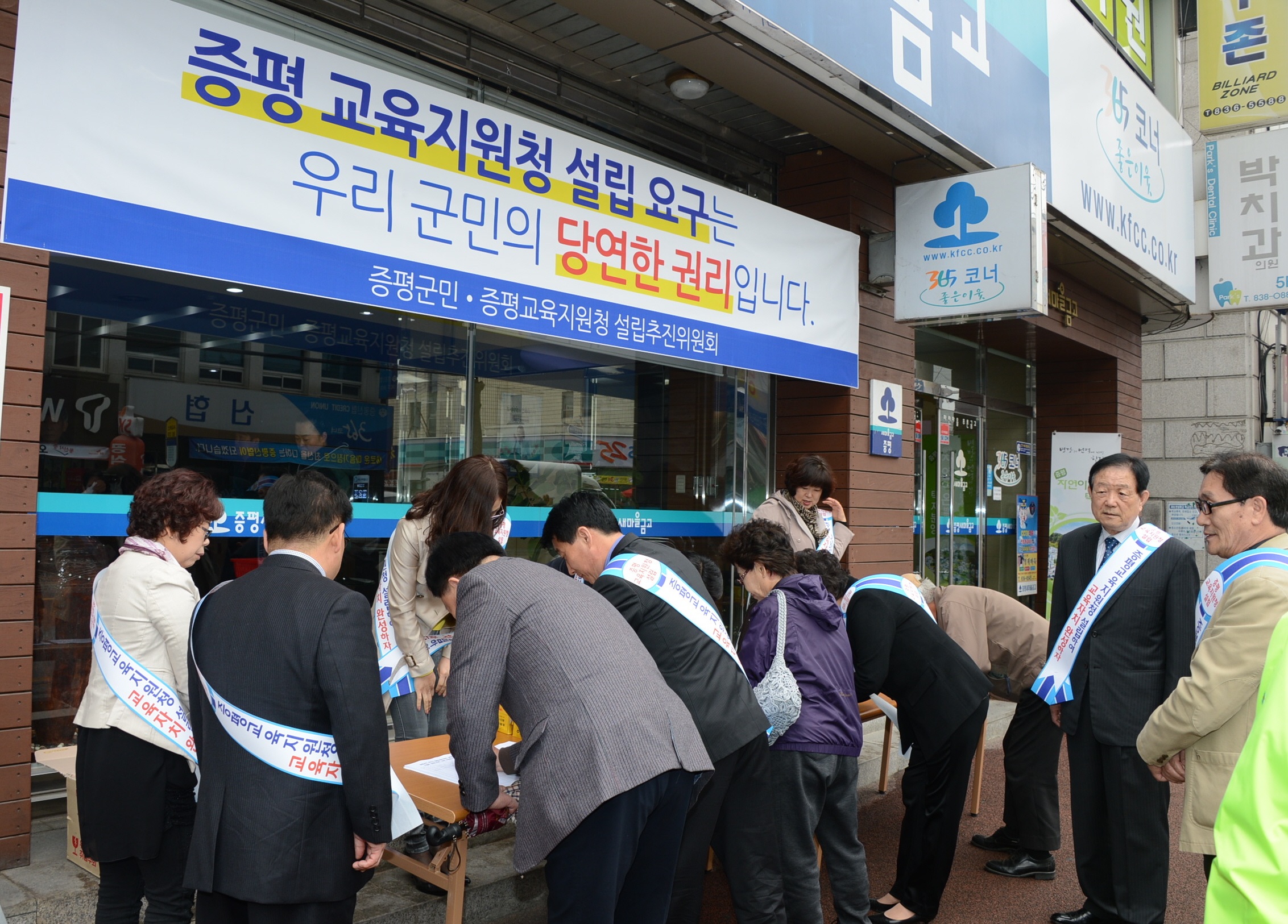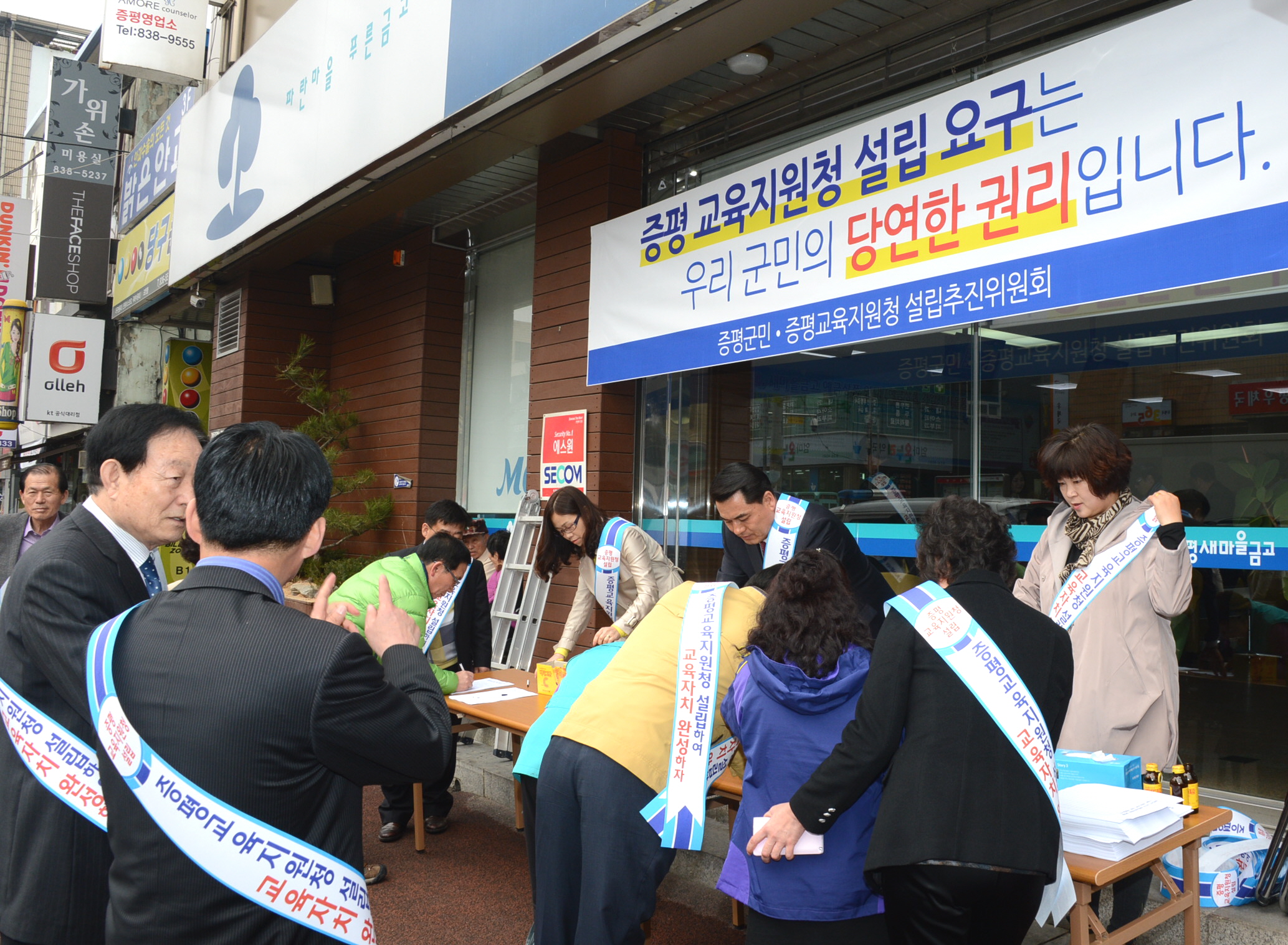 증평발전포럼과 증평교육지원청 설립추진위원회(회장 이종일)는 26일 11시 증평새마을금고 앞에서 서명운동을 전개 했다.[증평포토포커스 참조]