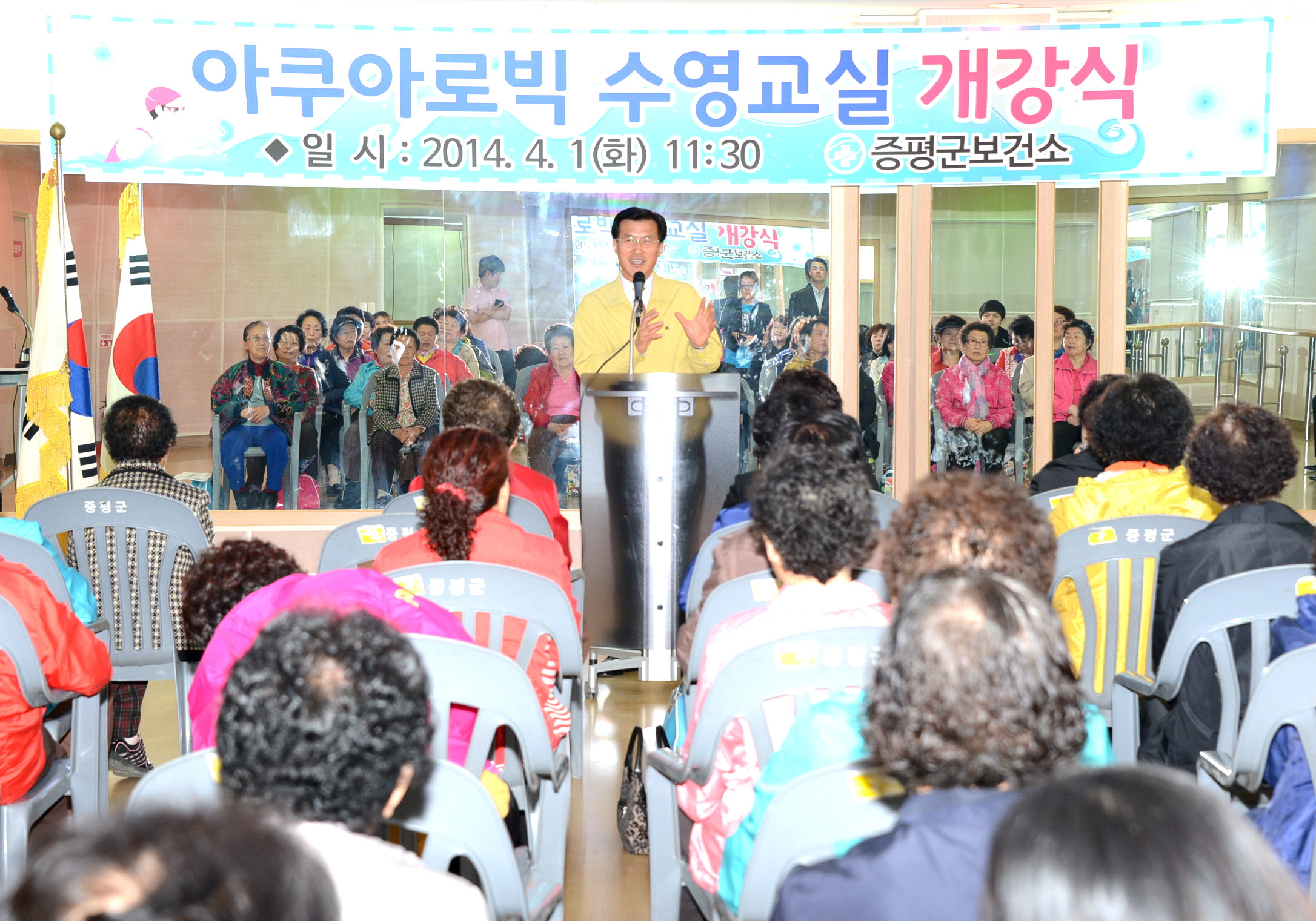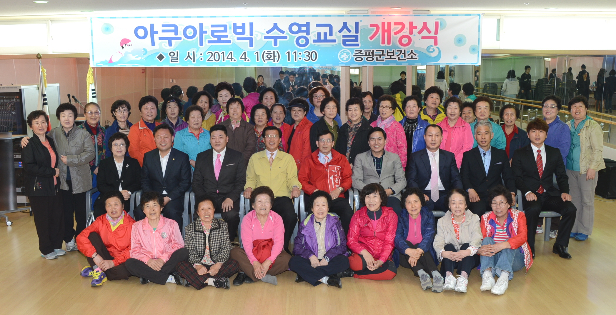 증평군보건소는 1일 증평국민체육센터에서 수강생 및 관계자 등 50여명이 참석한 가운데 아쿠아로빅수영교실 개강식을 가졌다. [보도자료실 참조]