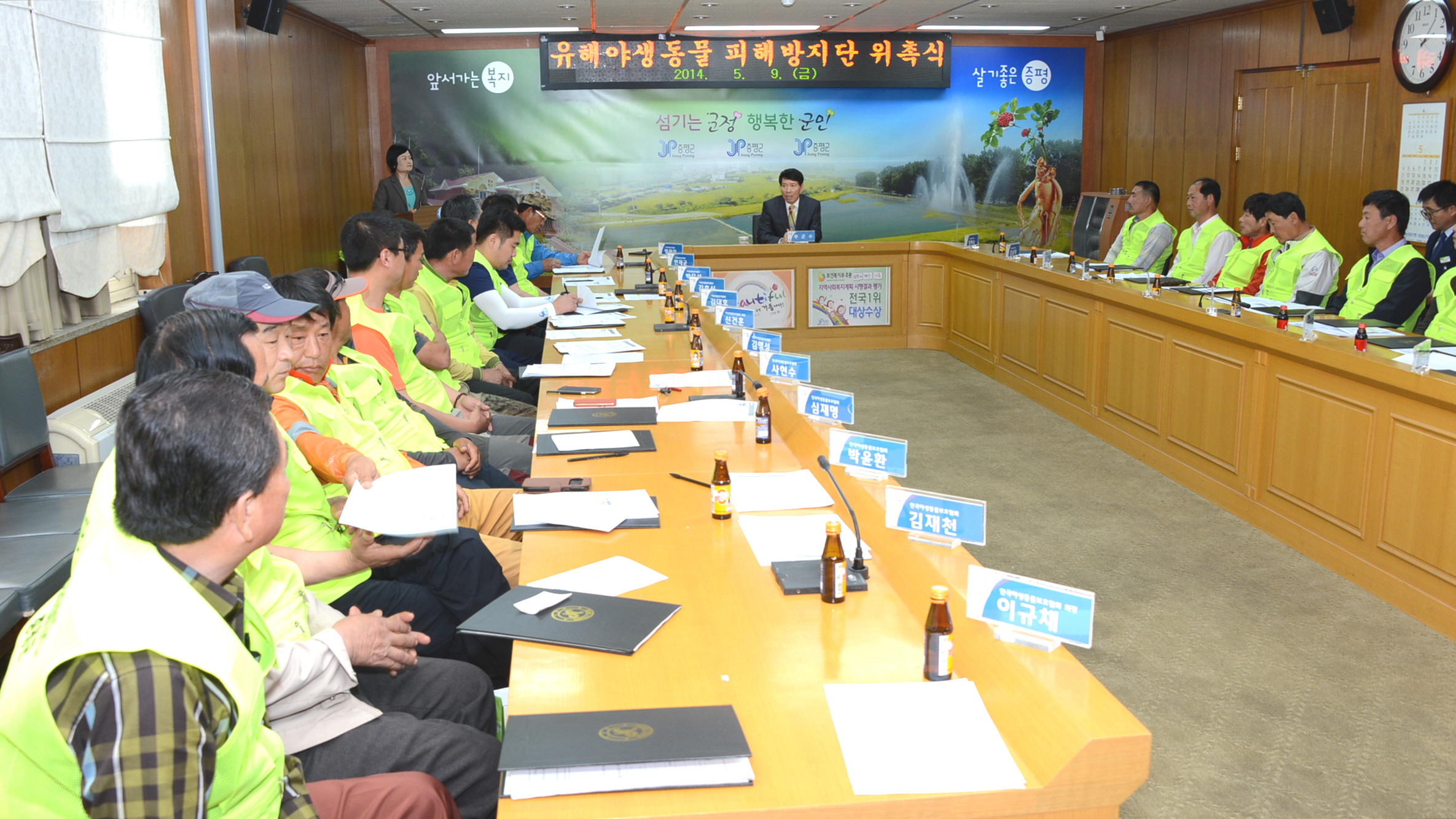 증평군은 유해야생동물로 인한 농작물 피해를 사전에 예방하기 위해 9일 군청 소회의실에서 유해야생동물 피해방지단 위촉식을 가졌다. [보도자료실 참조]