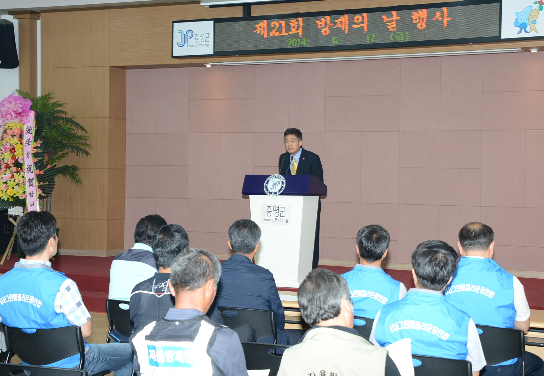증평군은 17일 오전 10시 군청 2층 대회의실에서 제21회 방재의 날을 맞아 자율방재단, 유관기관 및 관계공무원 등 100여명이 참석한 가운데 증평군자율방재단 방재의 날 기념행사를 개최했다. [보도자료실 참조]