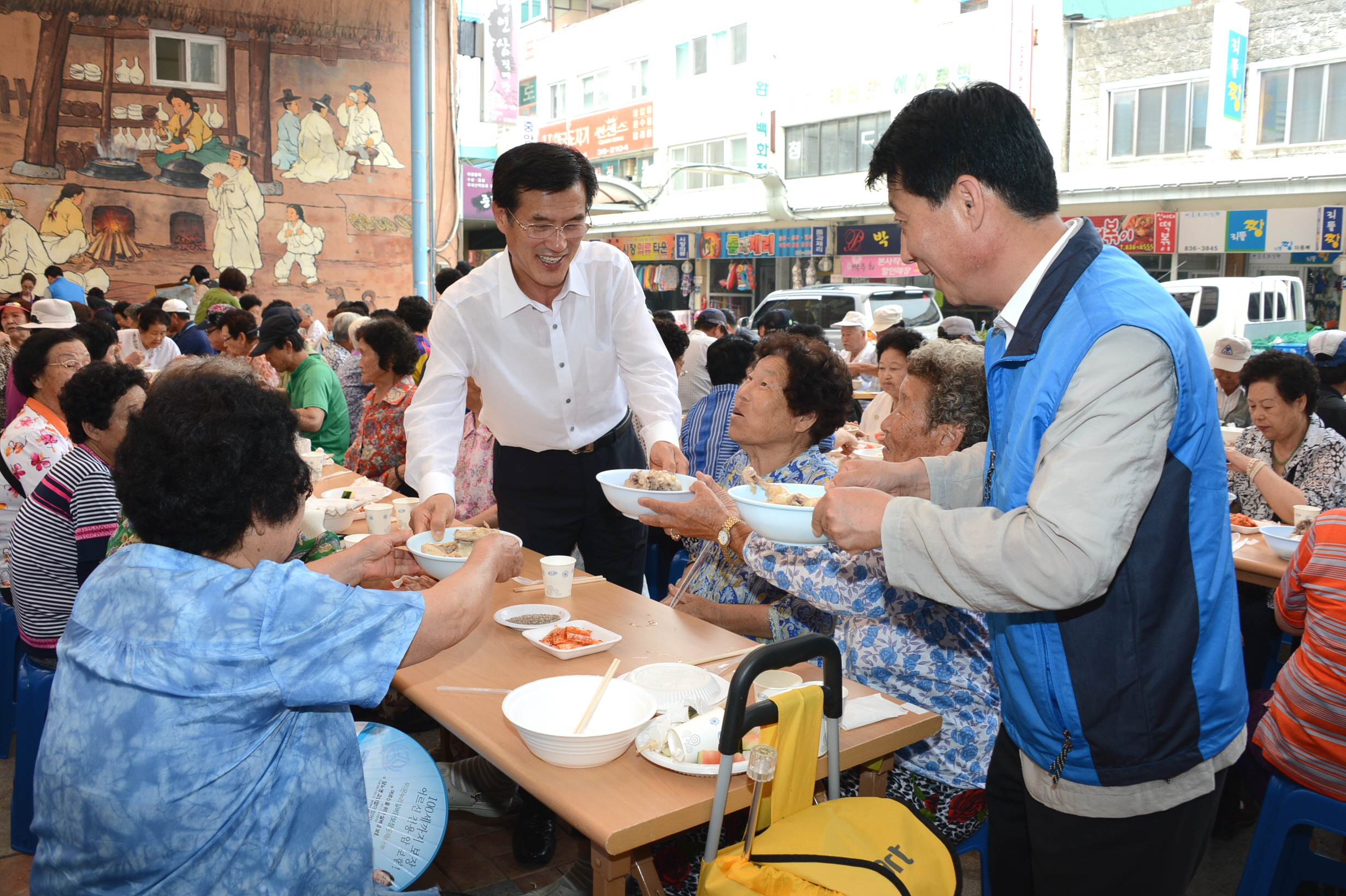 바르게살기운동증평군협의회(회장 김규환)는 삼복더위의 시작인 초복에 앞서 15일 오전 11시에 증평장뜰시장 다목적광장에서 독거노인 및 어르신 500명을 초청, ‘孝, 사랑의 점심 나눠주기’행사를 열었다. [보도자료실 참조]