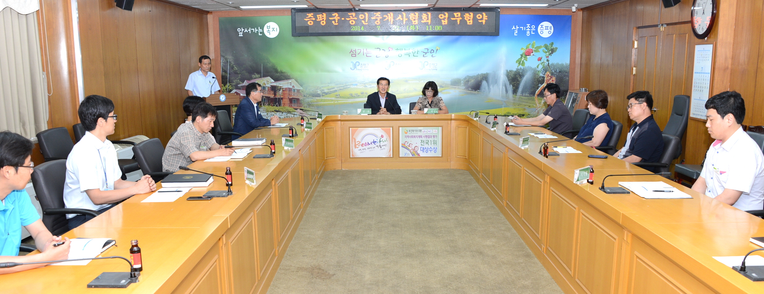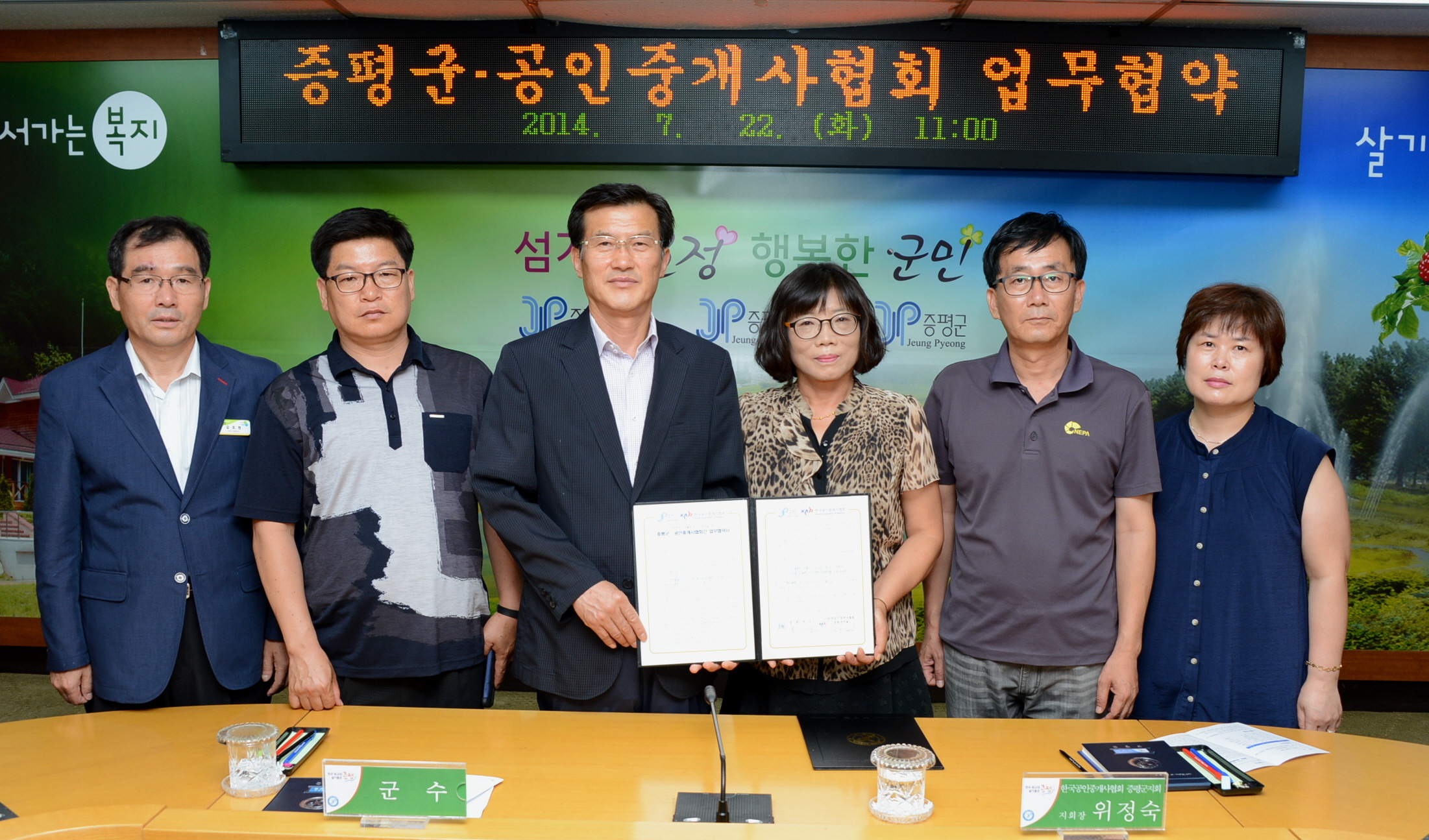 증평군(군수 홍성열)은 도로명주소 전면시행에 따른 도로명주소 생활화 및 조기정착을 위해 22일 오전11시 군청 소회의실에서 한국공인중개사협회 증평군지회(회장 위정숙)와 업무협약을 체결했다. [보도자료실 참조]