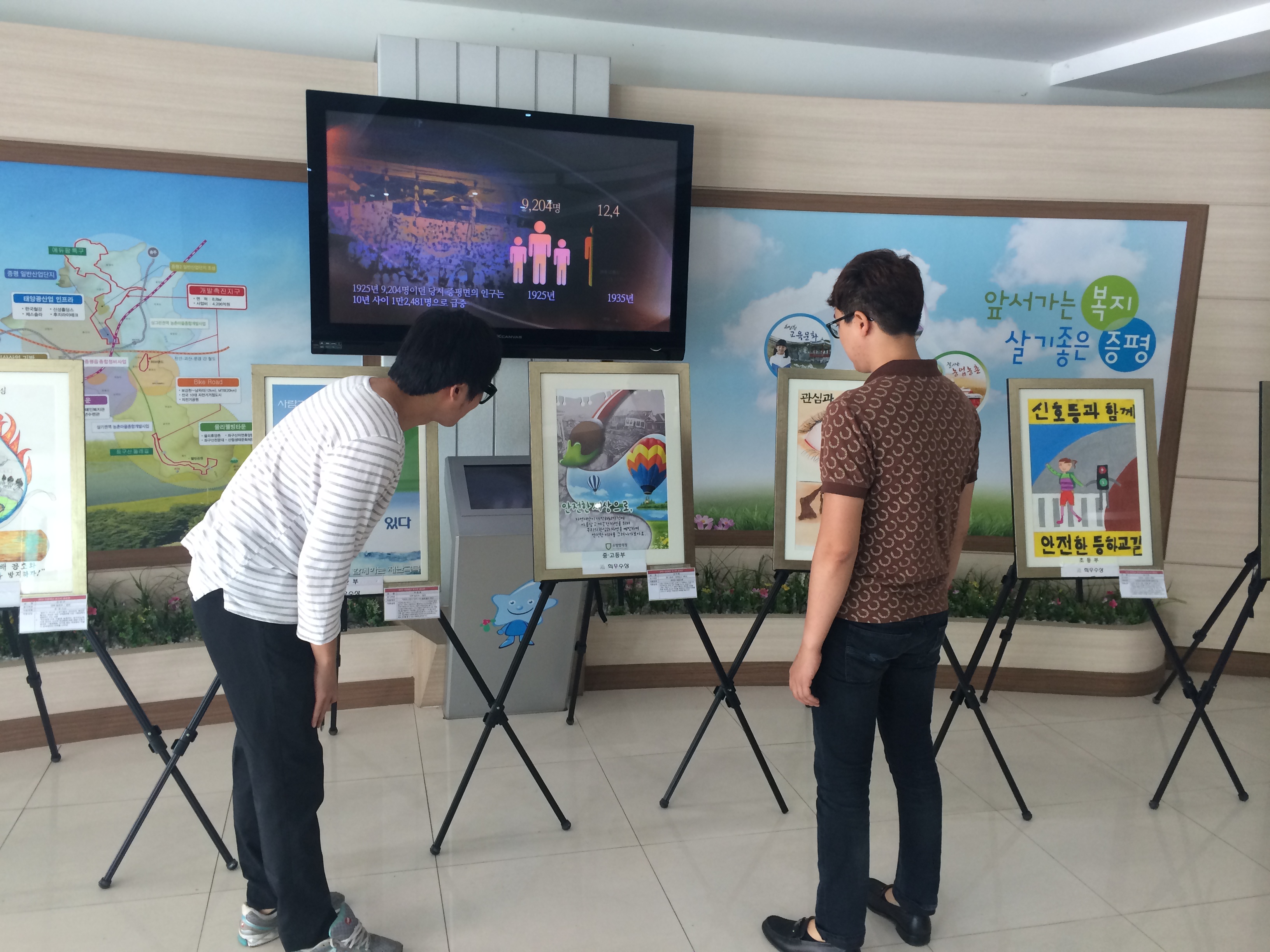 증평군은 지난 3월 소방방재청 주최 증평군 주관으로 시행된 2014 자연재난 포스터 공모전에서 입상한 우수 작품 10점과 공모작 8점을 지난 11일부터 14일까지 군청 1층 로비에서 전시하고 있다. [증평보도자료실 참조]