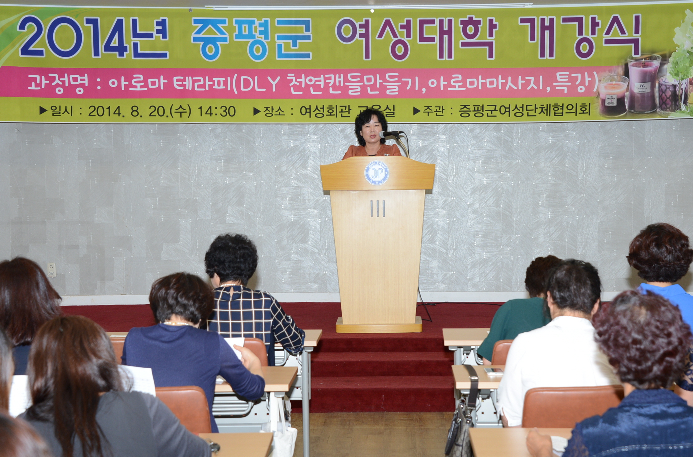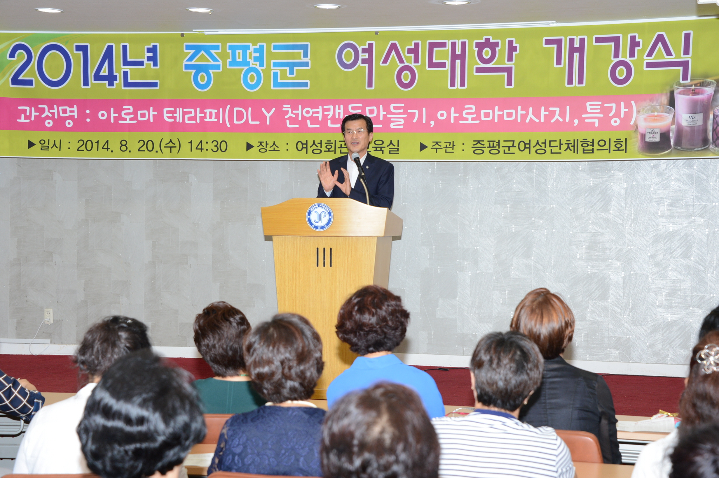 증평군은 20일 여성회관 교육실에서 홍성열 증평군수 등 지역인사와 수강생 및 여성단체회원 등 60여명이 참석한 가운데 ‘2014년 증평군 여성대학 개강식’을 가졌다. [보도자료실 참조]