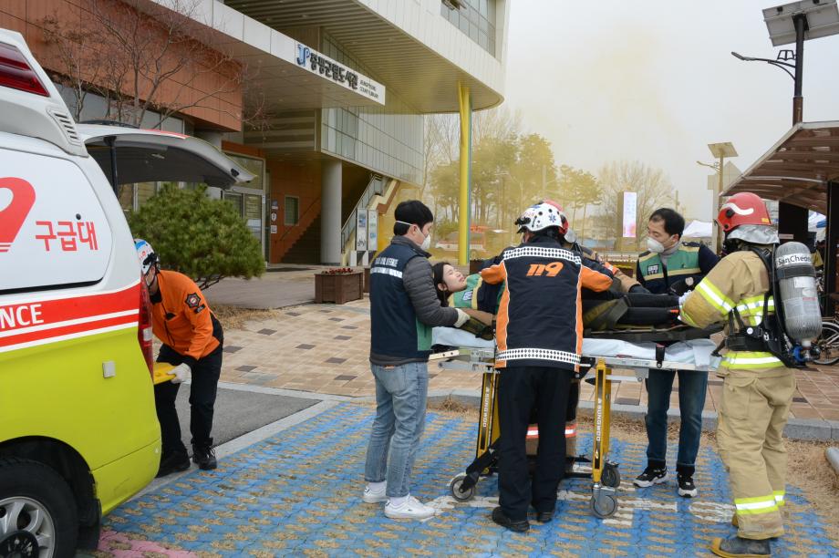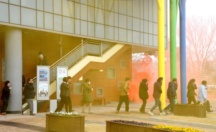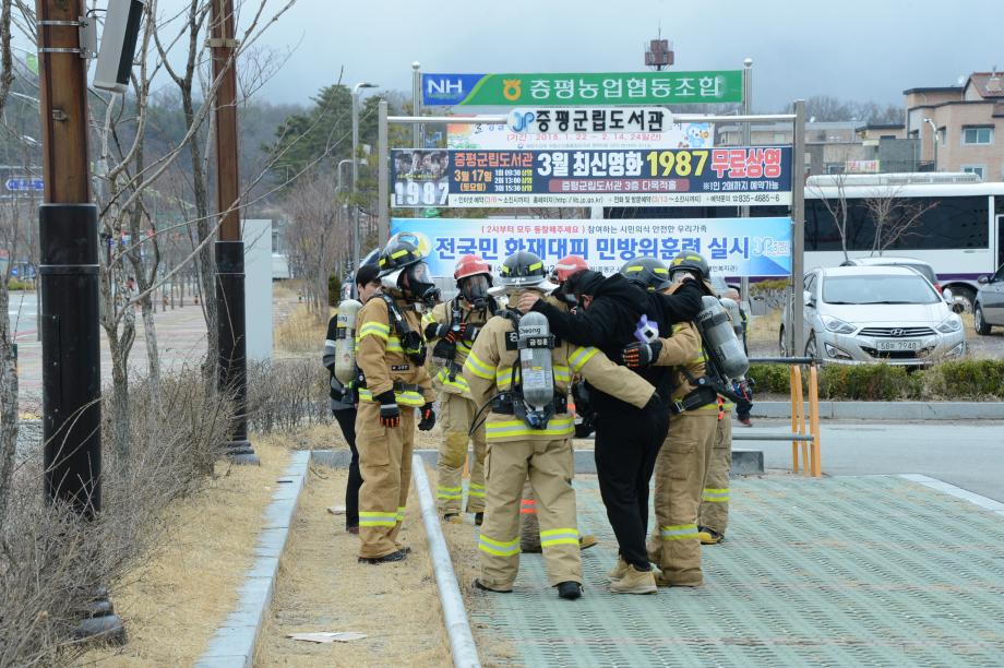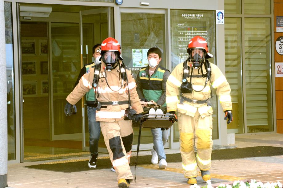 증평군이 21일 오후2시 증평읍 송산리 군립도서관과 증평읍 내성리 장애인복지관 등에서 화재대피 민방위 훈련을 실시했다.(보도자료실 참조)