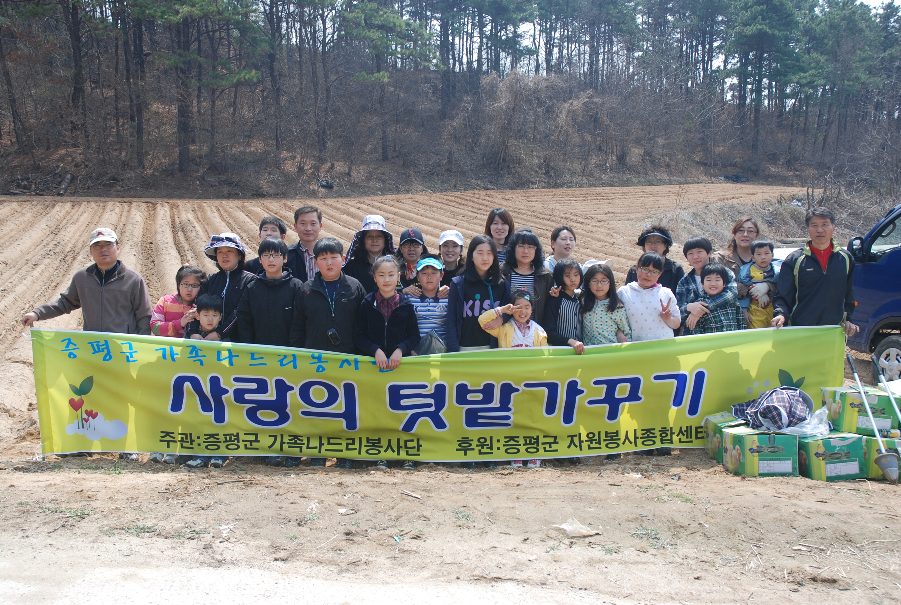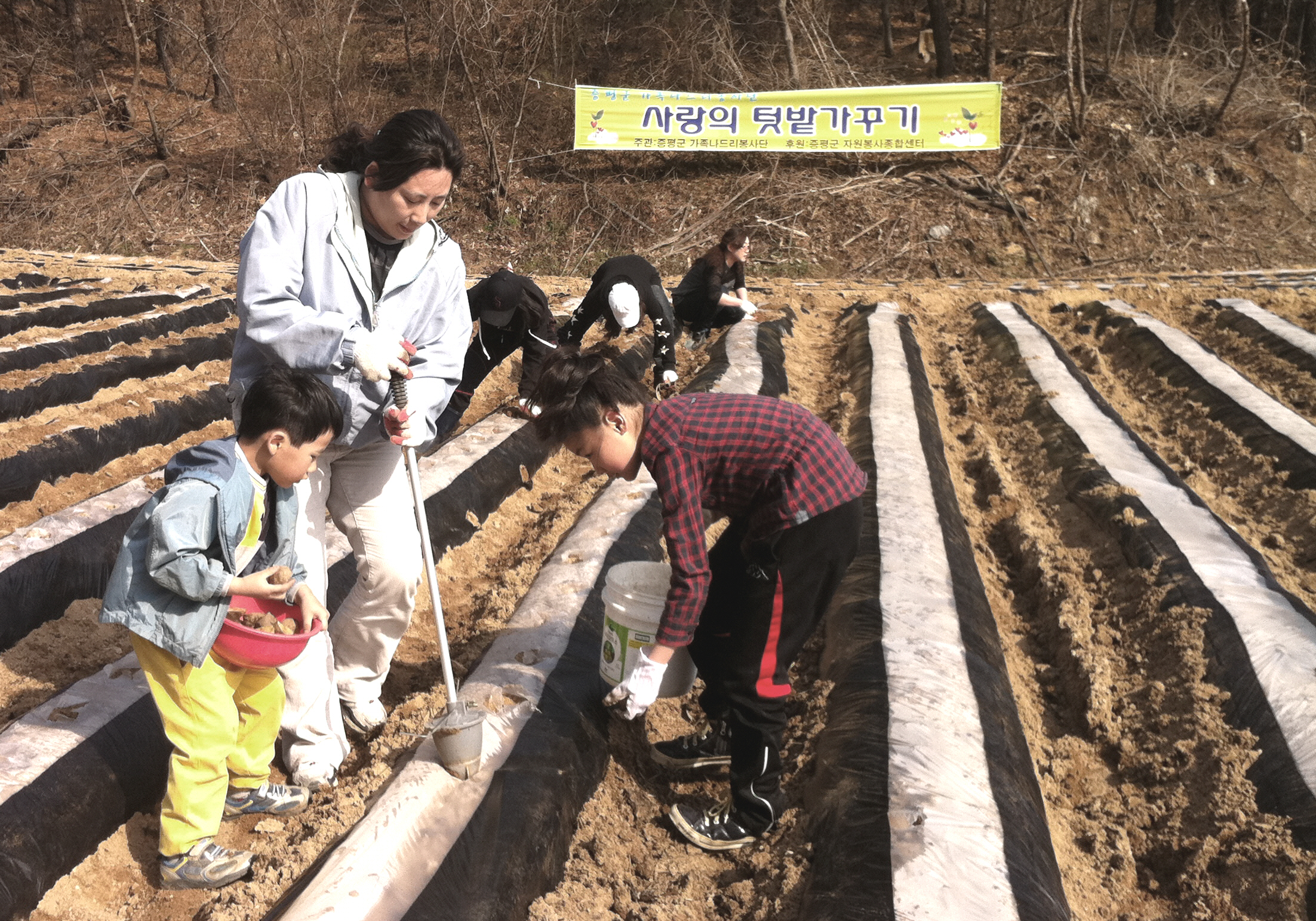 증평군자원봉사종합센터(센터장 신재영)소속 가족나드리 봉사단(회장 이향순)은 지난 9일 증평읍 송산리 소재 텃밭에서 회원 25명이 참여한 가운데 감자심기행사를 실시했다.[보도자료실 참조]