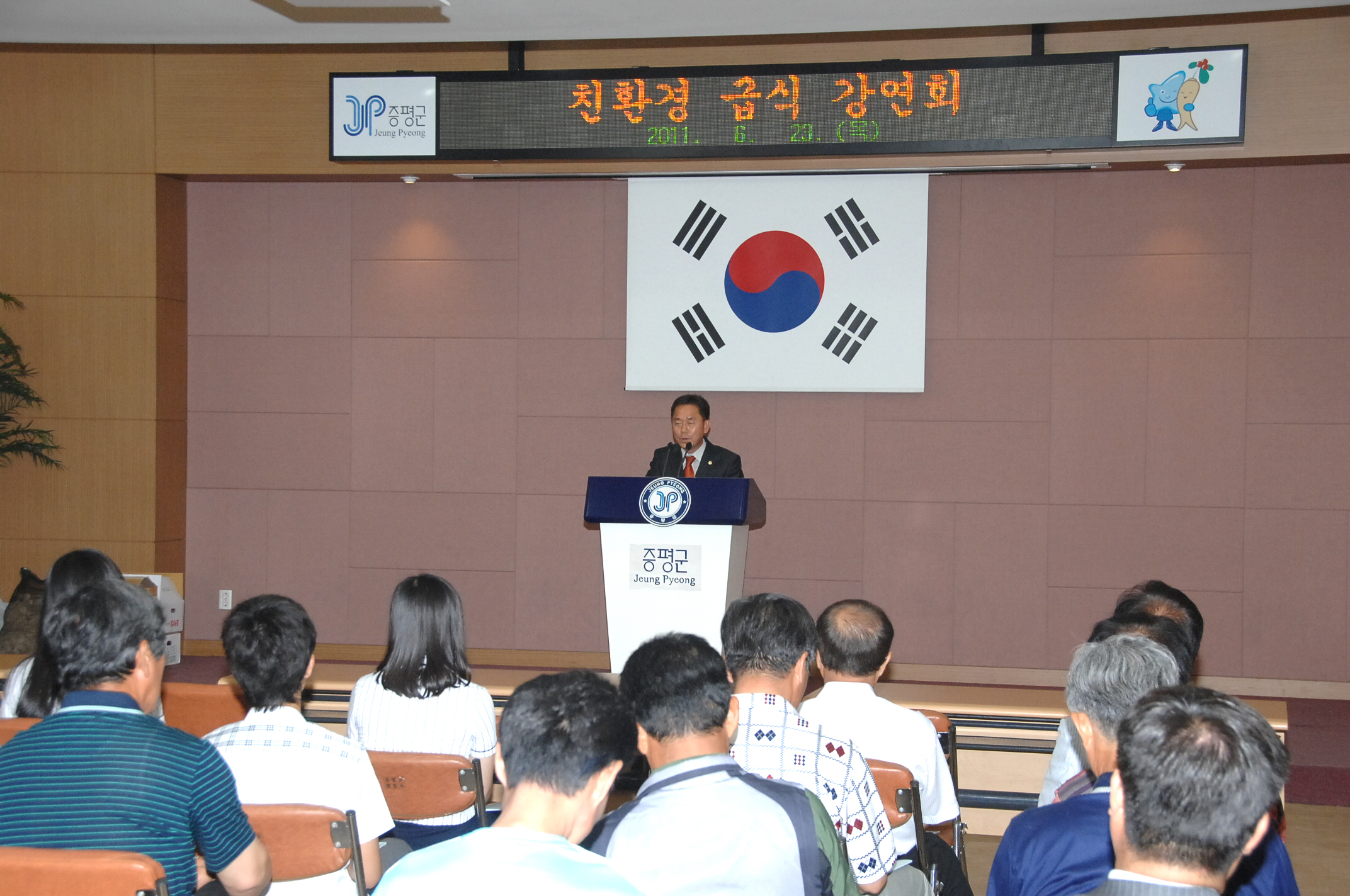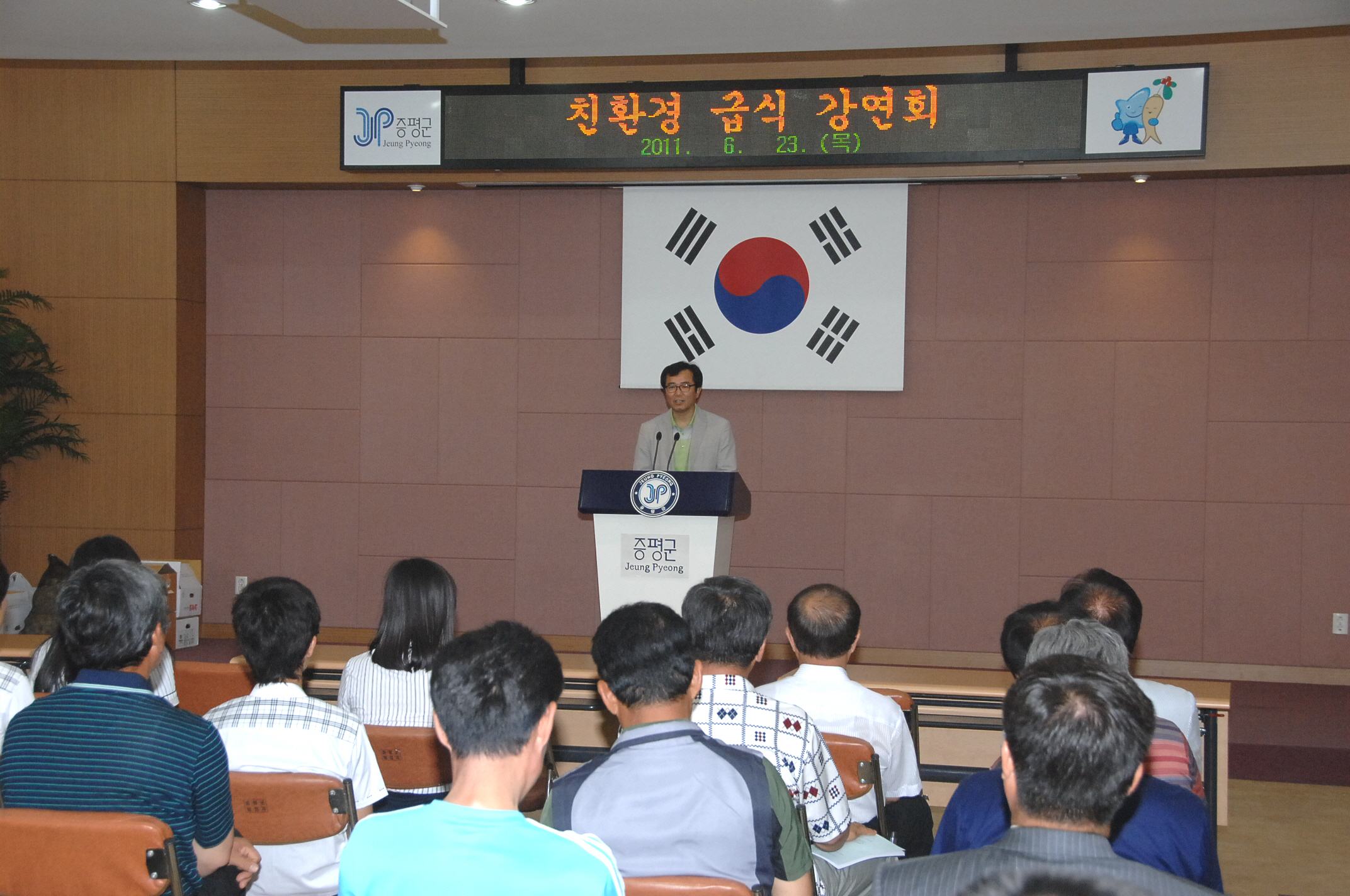 증평군은 학교 무상급식에 이어 친환경 급식에 대한 관심이 고조되고 있는 가운데 23일 오후 2시 군청대회의실에서 학부모와 학생, 학교관계자를 비롯한 공무원 등 150여명이 참석한 가운데 군청 2층 대회의실에서 김병우 前 충청북도 교육위원을 초청하여 친환경 급식 강연회를 개최했다.