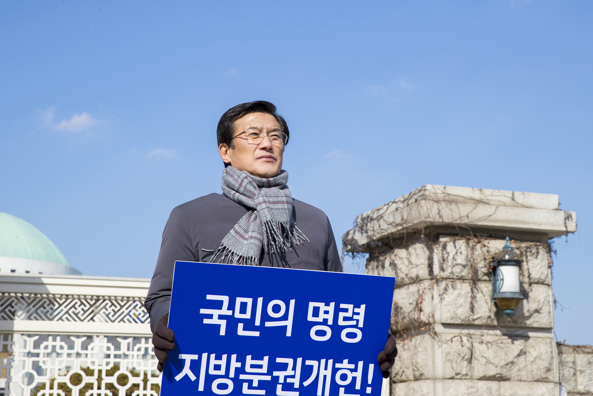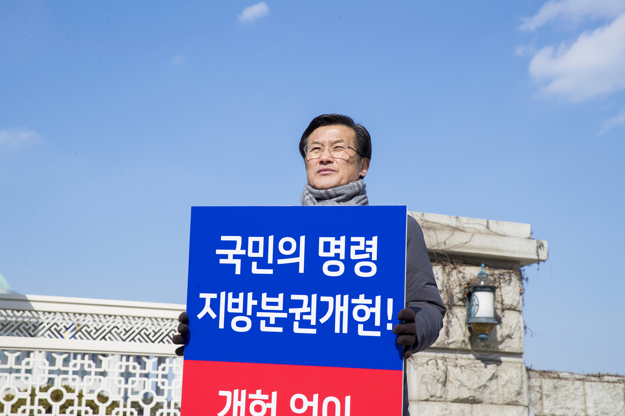 홍성열 증평군수 지방분권개헌 촉구 1인 시위