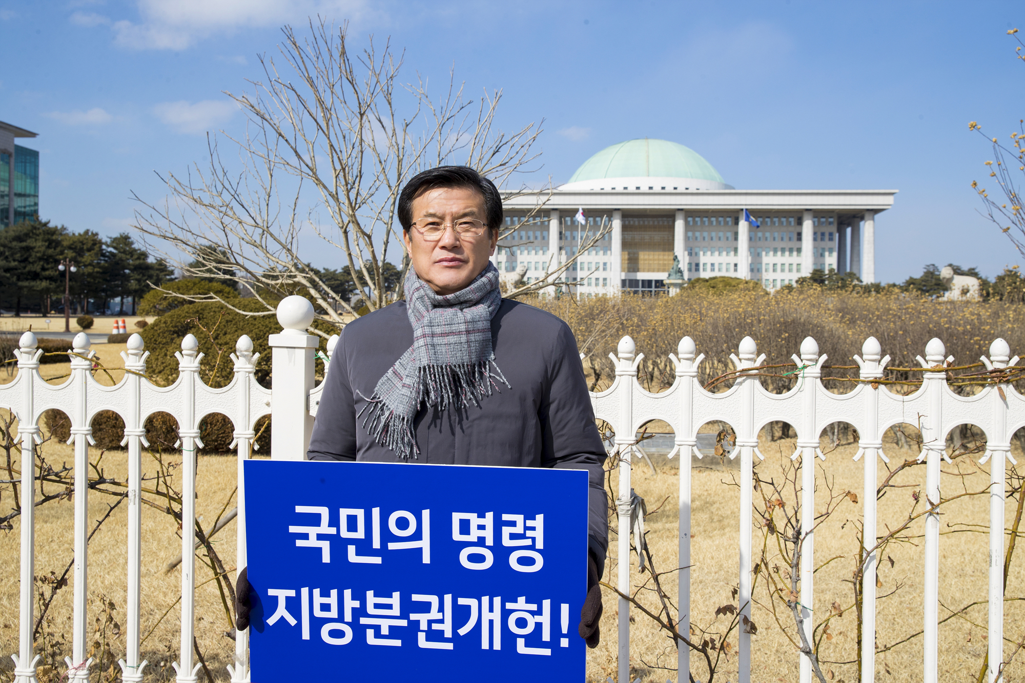 홍성열 증평군수는 2월 12일 임시국회가 개회중인 국회의사당 정문에서‘국민의 명령 지방분권 개헌’,‘개헌 없이 주권 없다’는 문구가 적힌 팻말을 들고 1인 시위를 벌였다.(보도자료실 참조)