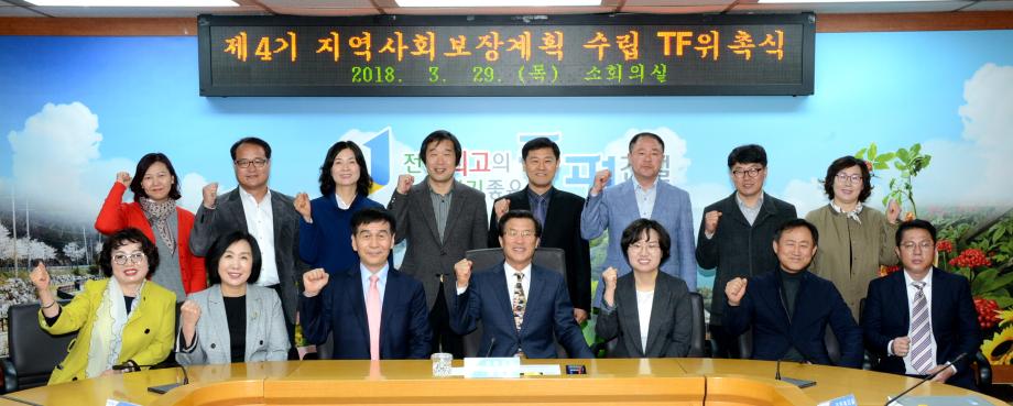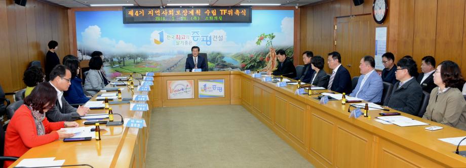 증평군은 29일 군청 소회의실에서 제4기 증평군 사회보장 중장기 계획(2019~2022년) 수립을 위해 전문가 및 지역대표, 공무원 등 36명으로 구성된 TF팀 위촉식을 가졌다.(보도자료실 참조)