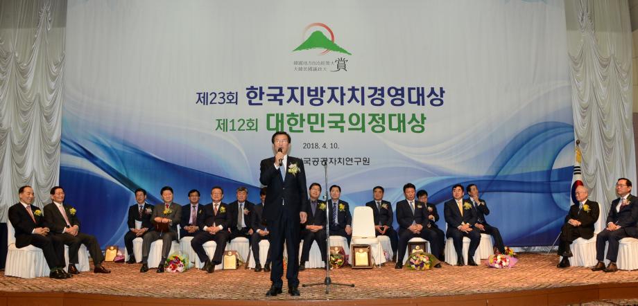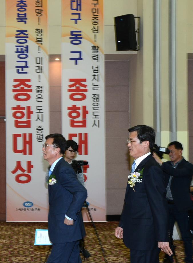 증평군이 10일 서울시 영등포구 공군회관에서 한국공공자치연구원이 주관한‘제23회 한국지방자치경영대상 시상식’에서 최고의 영예인 종합대상을 수상했다.(보도자료실 참조)