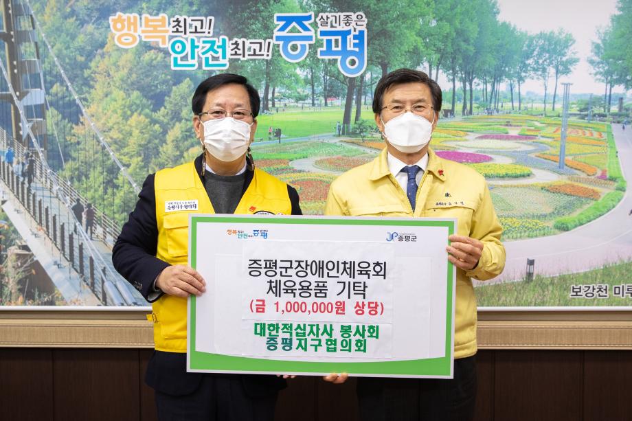대한적십자사봉사회 증평지구협의회(회장 김도중)는 23일 증평군장애인체육회(회장 홍성열)에 장애인 생활체육인들을 위한 보치아 경기용품 등(100만원 상당)을 전달했다.