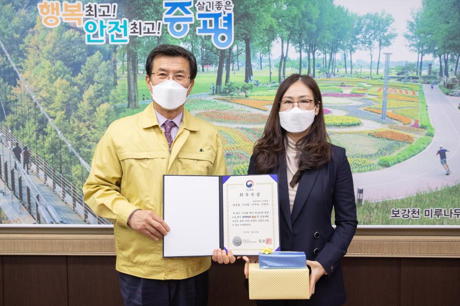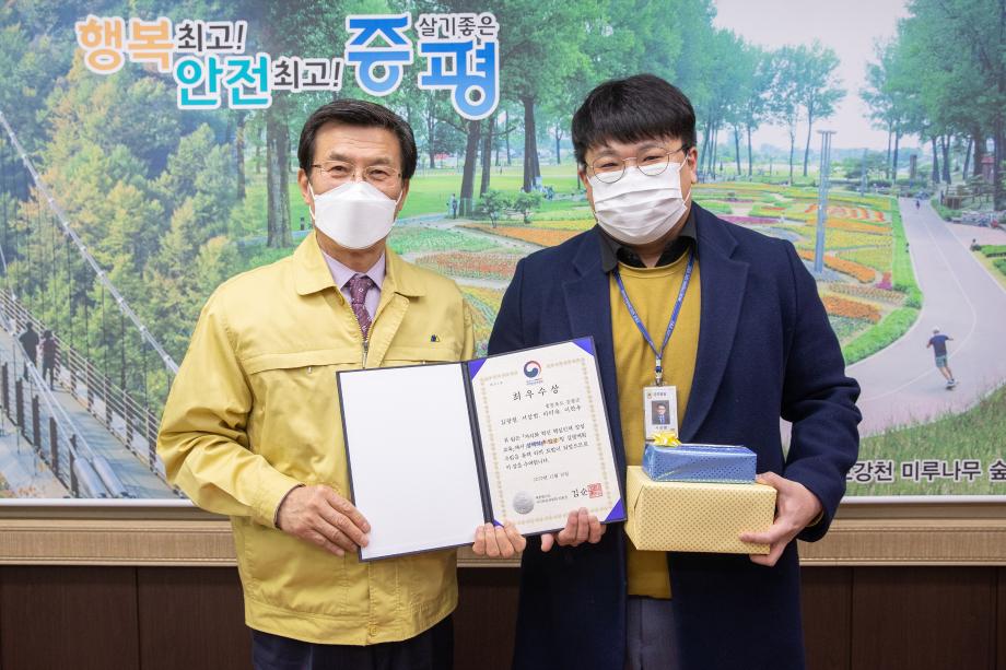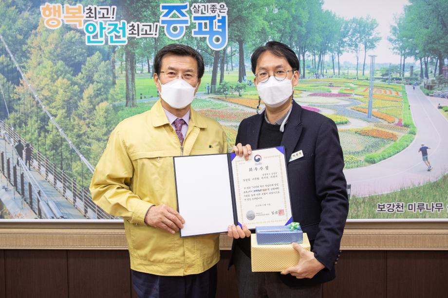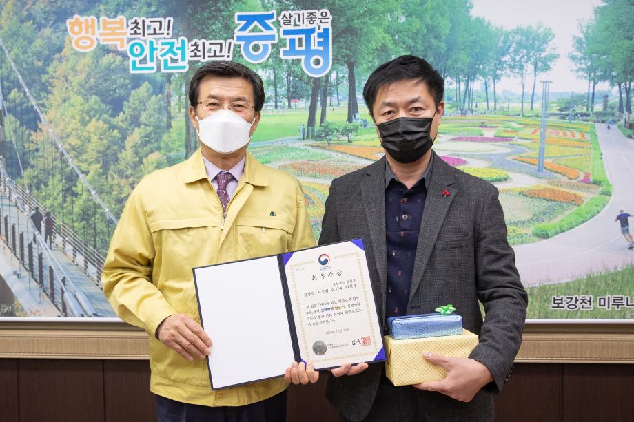 증평군이 자치와 혁신 핵심인재 양성 교육에서 두각을 나타내며 대통령 소속 자치분권위원장상을 수상, 6일 군수실에서 전수식을 개최했다.