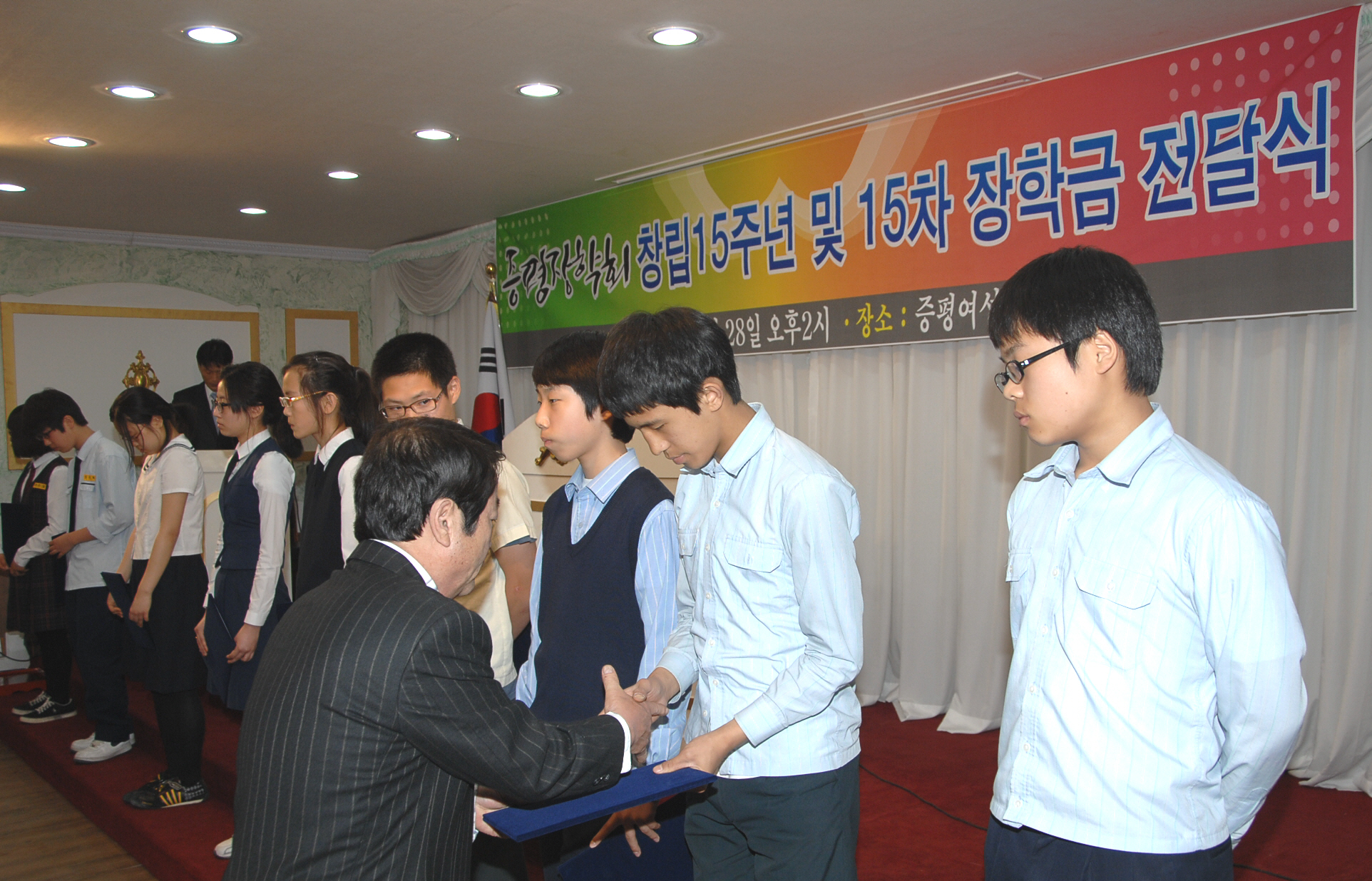 증평장학회(회장 이춘희)는 28일 오후 2시 증평읍 장동 여성회관에서 장학회 창립 15주년 기념식을 갖고, 지역 내 가정형편이 어려운 초ㆍ중ㆍ고 및 대학생 25명에게 총 560만원의 장학금을 전달했다.[보도자료실 참조]