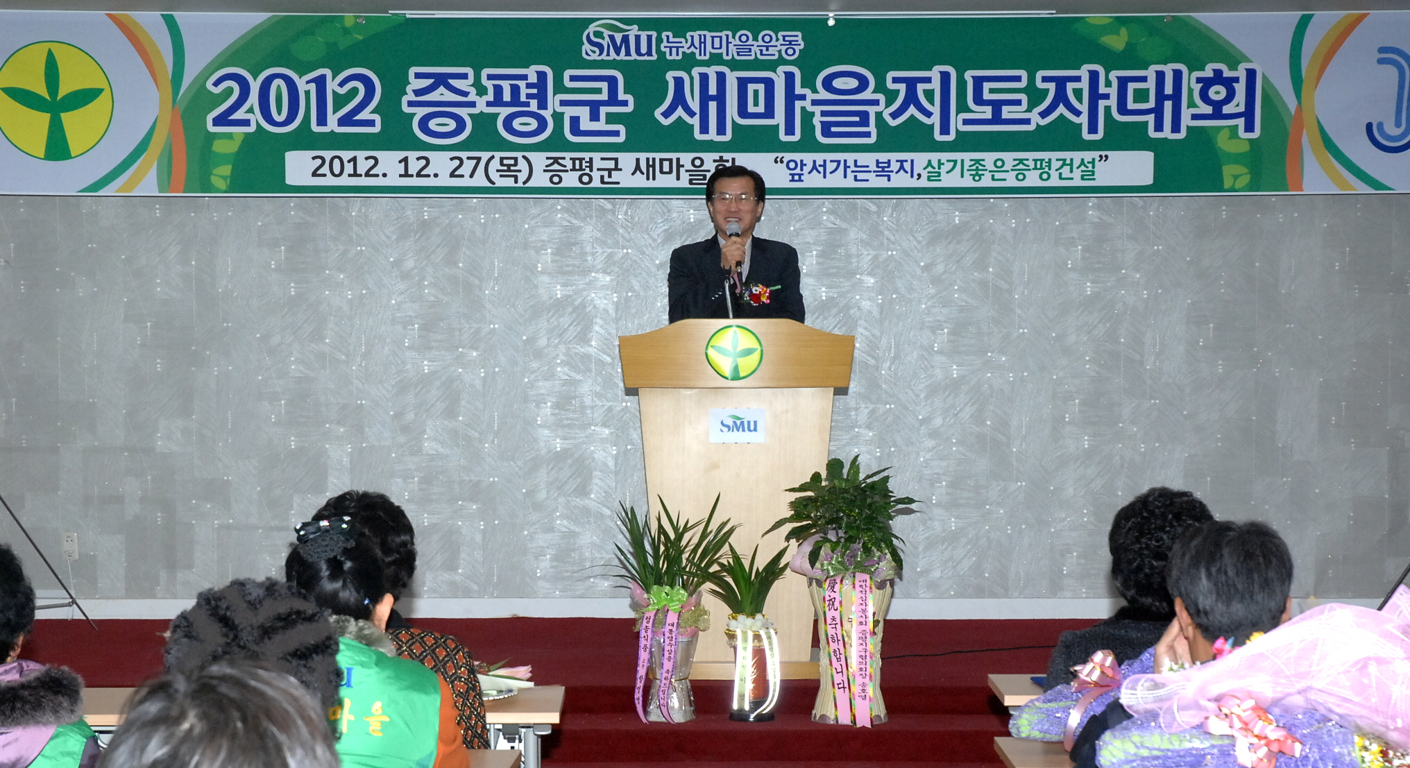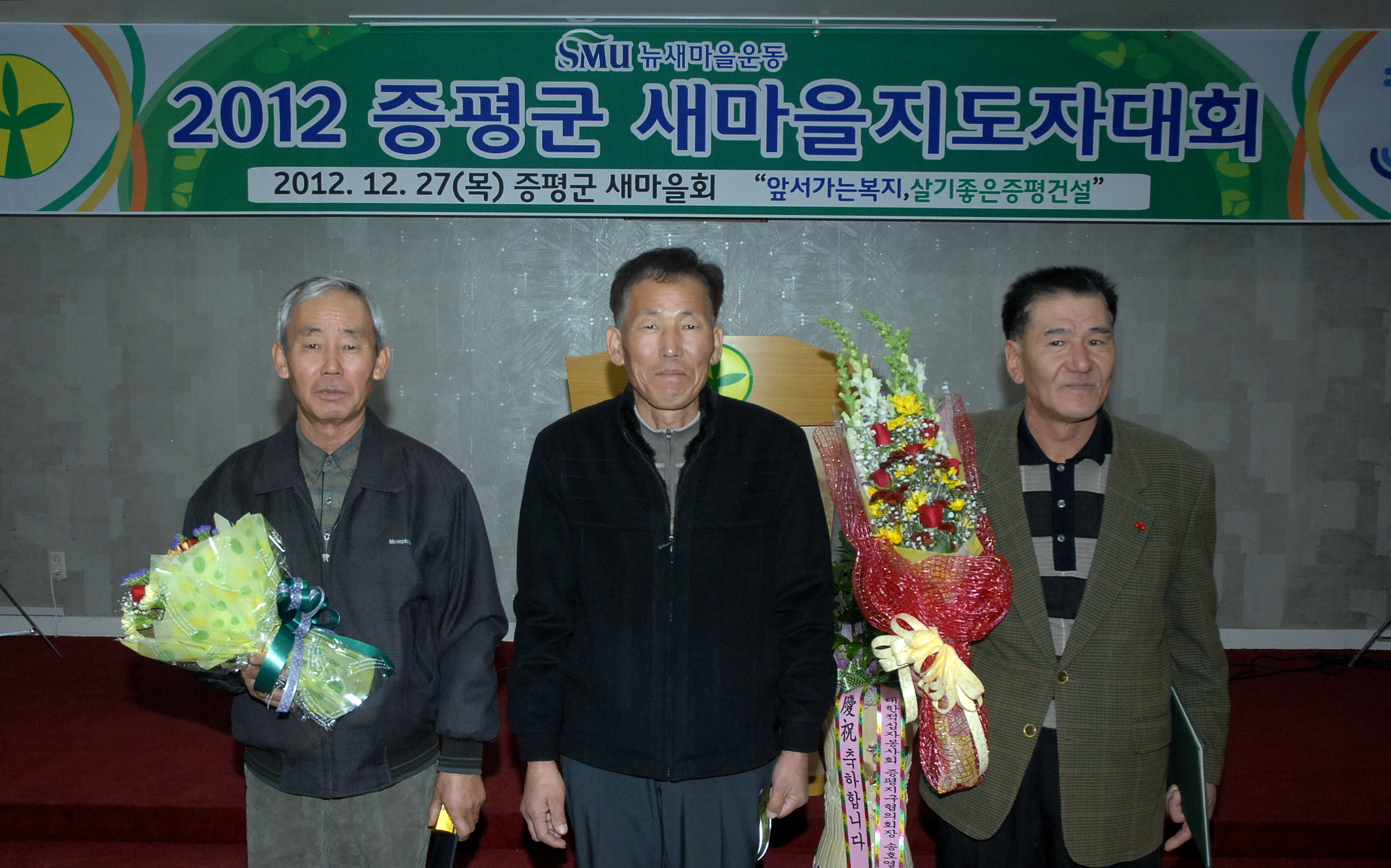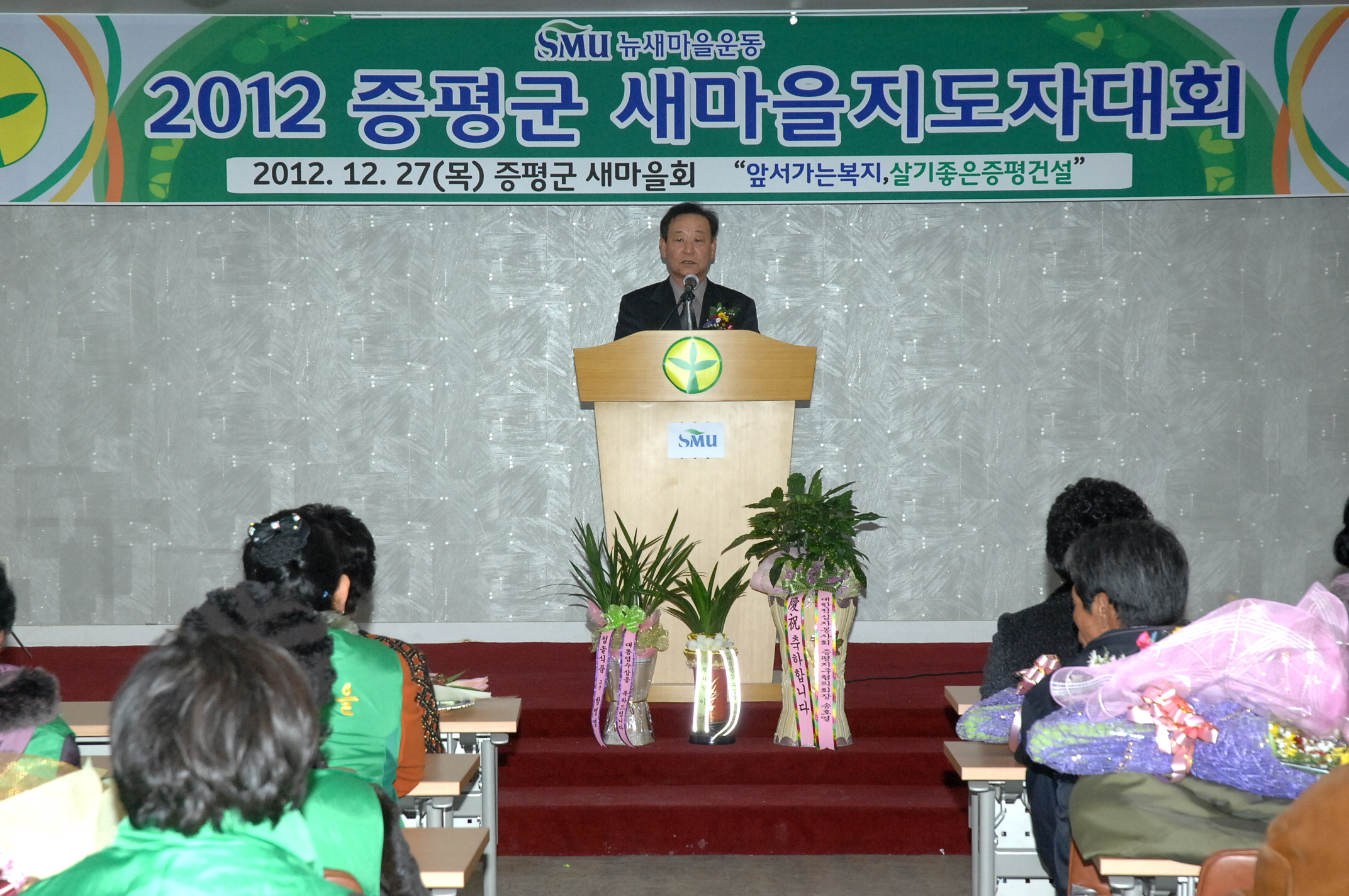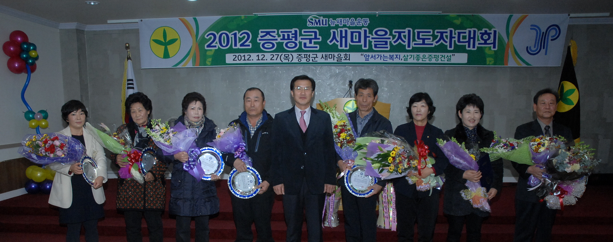 증평군새마을회(회장 강성오)는 27일 오전 11시 증평군여성회관에서 지도자 및 부녀회원 등 100여명이 참석한 가운데 ‘2012 증평군새마을지도자 대회’를 개최했다. [보도자료실 참조]