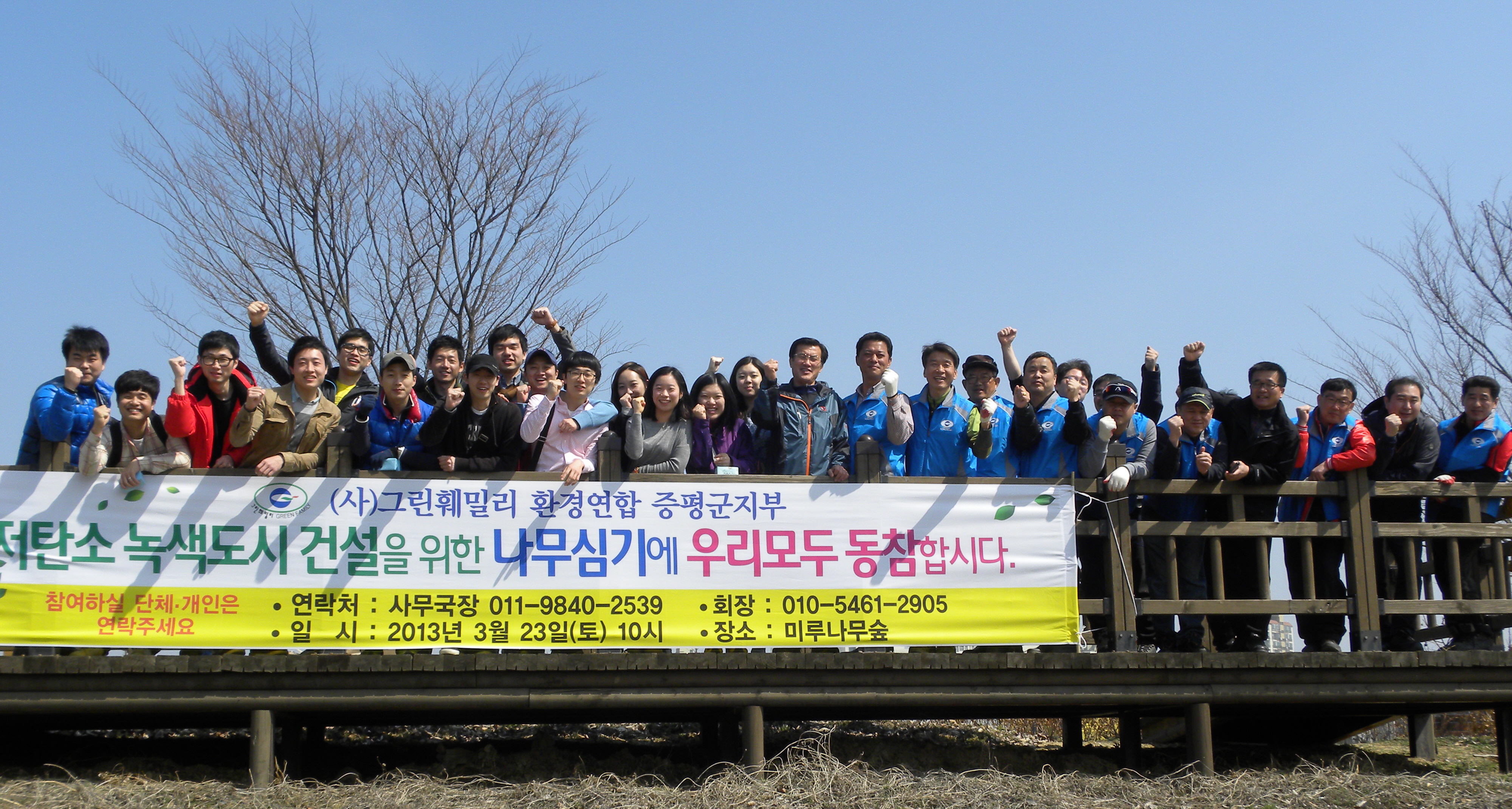 (사)그린훼밀리환경연합 증평군지부(지부장 배종관)는 제21회 세계 물의 날을 기념하여 23일 환경정화 활동 및 나무심기 행사를 보강천 주변에서 가졌다.{보도자료실 참조]