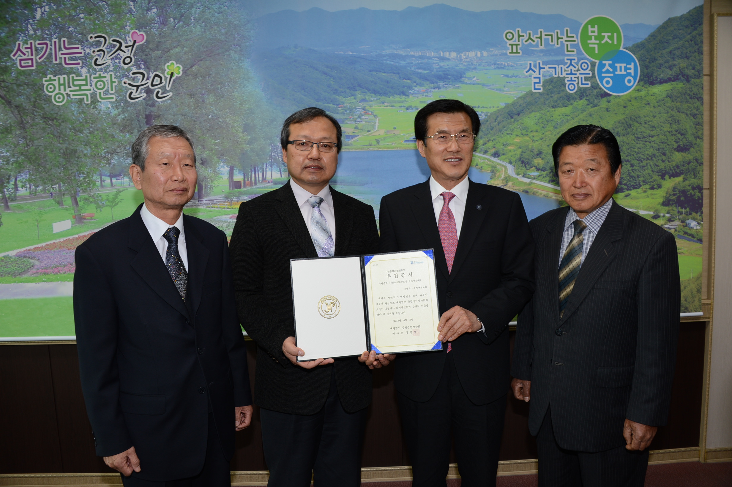 증평군 증평읍 연탄리 소재 증평제일교회(담임목사 김석환)에서 3일 (재)증평군민장학회(이사장 홍성열)에 장학기금 5천만원을 기탁했다.