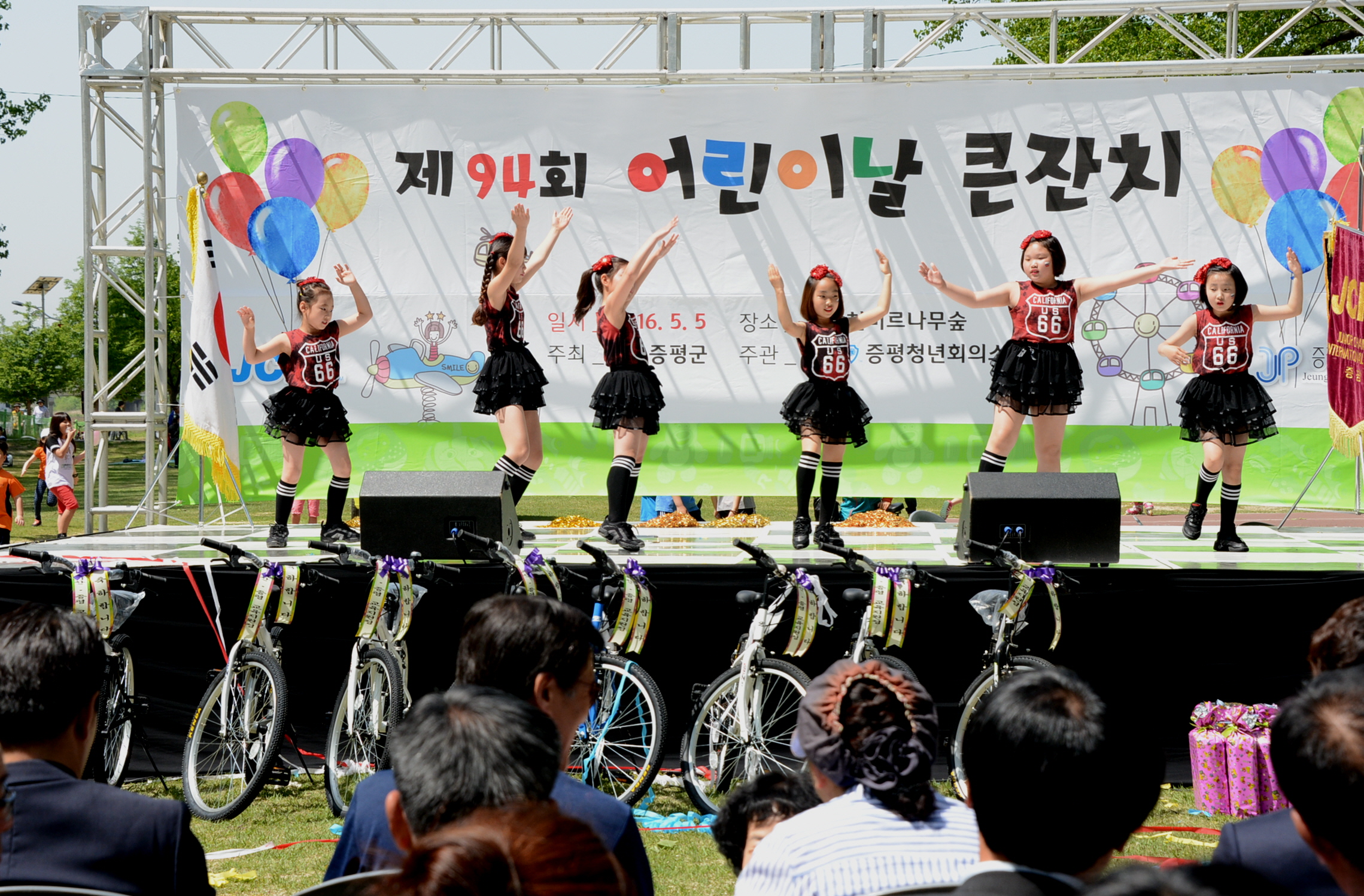 증평군은 5일 제94회 어린이날을 맞이하여 보강천 미루나무숲 일원에서 한별이 합창단과 37사단 군악대 등 축하공연과 유아 태권도 시범, 13공수특전단 특공무술 시범 그리고 물 소화기 쏘기, 점토조형 만들기 등 다양한 체험을 하는 어린이날 행사를 개최했다.[5월3일 보도자료 참조]