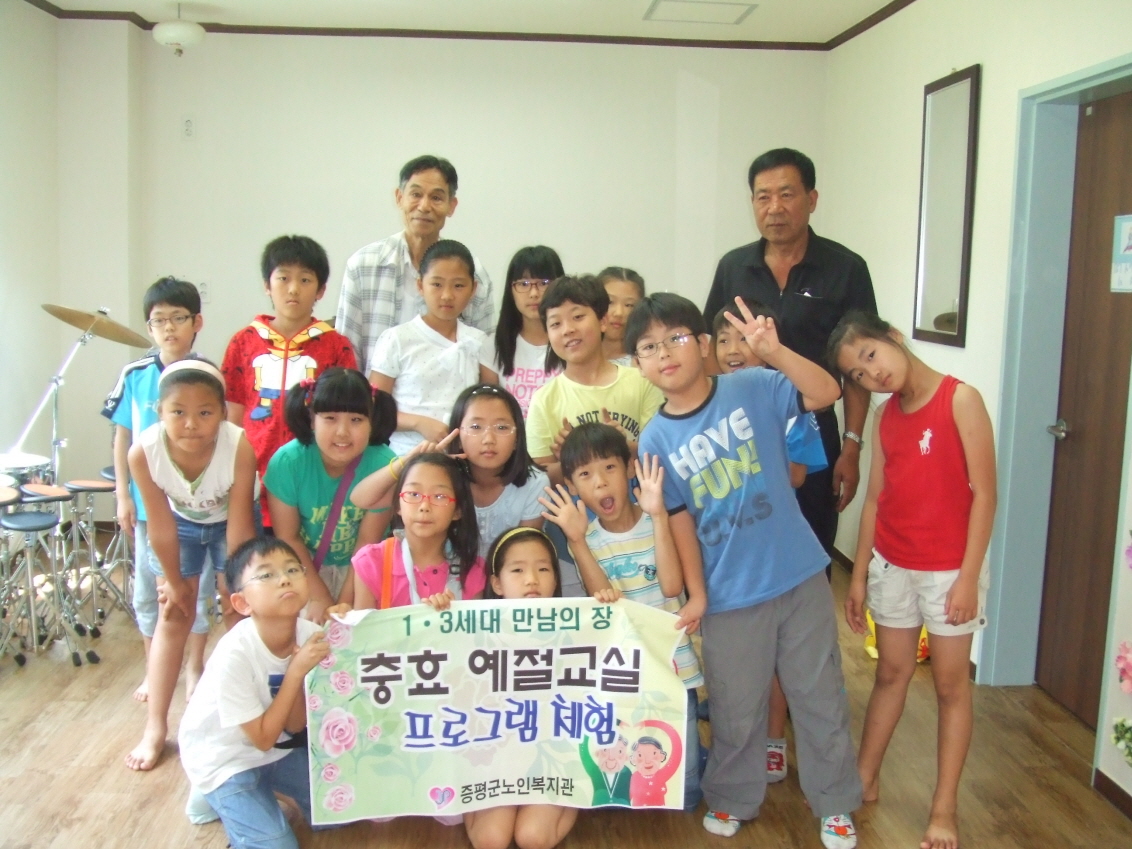 증평군노인복지관에서는 여름방학이 시작되는 7월19일부터 지역 내 초등학교 3~4학년을 대상으로 운영하고 있는 충효예절교실이 1·3세대간의 만남의 장 역할을 톡톡히 하고 있다.[보도자료실 참조]