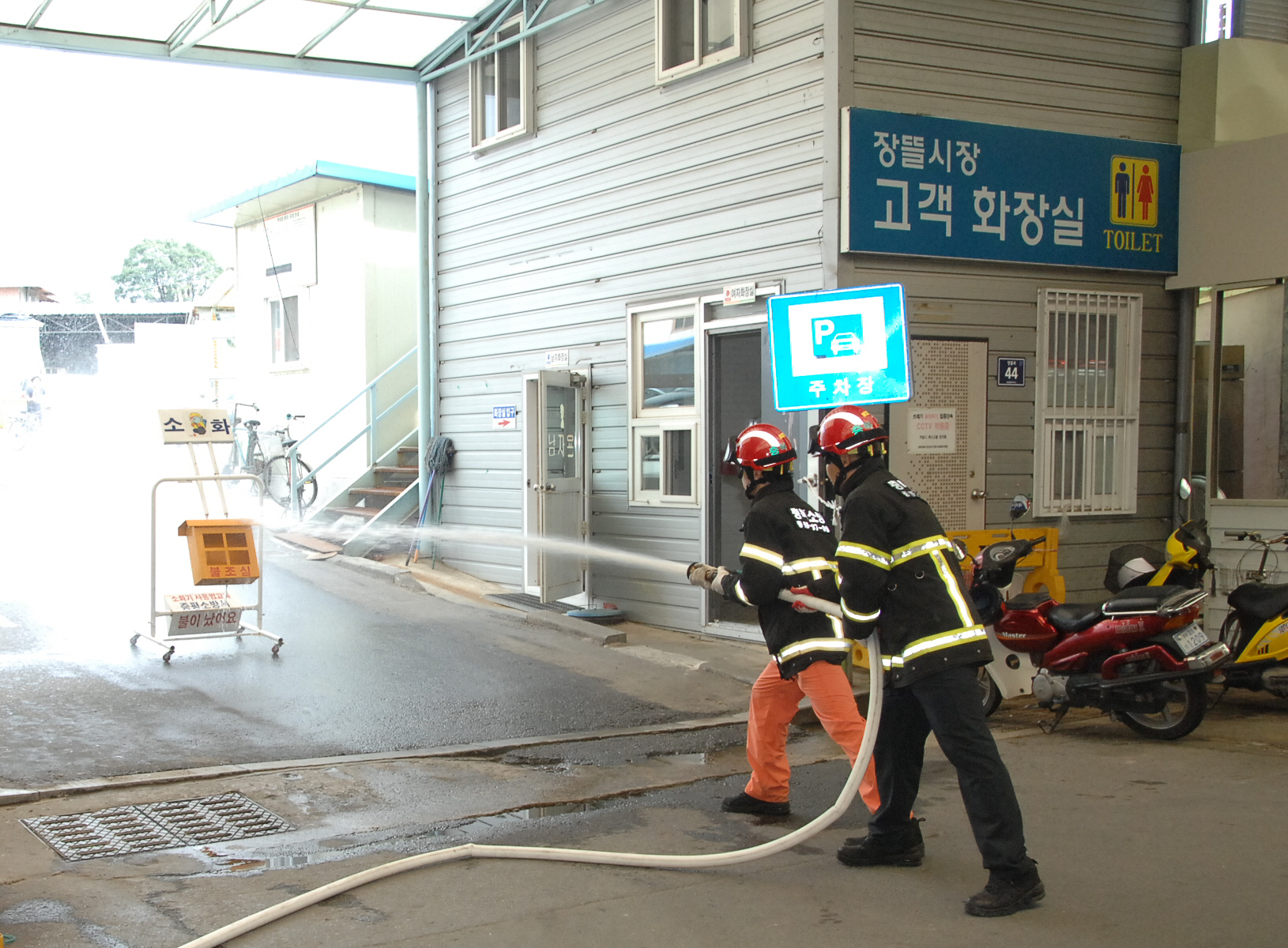 장뜰시장 비상소화전활용 화재진압 경연대회 열려
